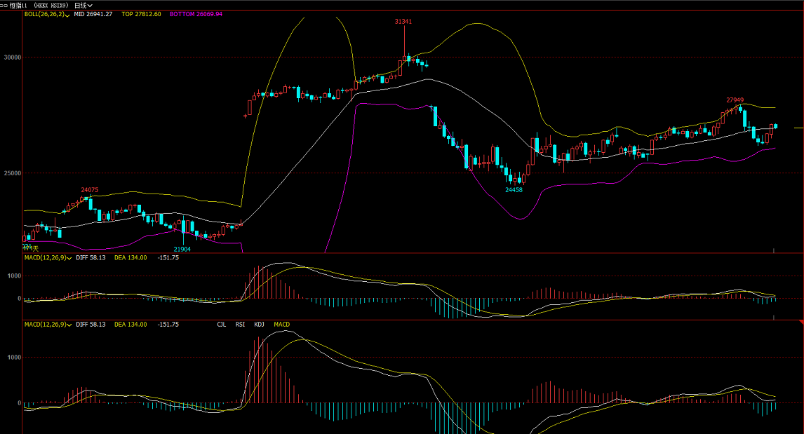 恒指基本面资讯: 美东时间周二,美股三大股指涨跌不一,纳指再创历史新高。截至收盘,道指跌0.36%,纳指涨0.24%,标普500指数跌0.06%。中概股58同城涨近14%,此前该公司披露第三季度营收为42.58亿元,同比增长17.4%,归属于普通股股东的净利润为7.92亿元,同比增长9%;58同城董事长兼首席执行官姚劲波表示,三季度,58同城在新房和本地服务扩大其领导地位的同时,二手房和招聘依旧保持领先的势头 周二,恒指再度上涨,早段低开,之后呈现单边上扬。截至收盘,恒指涨1.55%,报27093.8点,大市成交金额799.1亿港元。 昨日又是一个小幅放量上行的交易日,至于上涨的原因,有人说