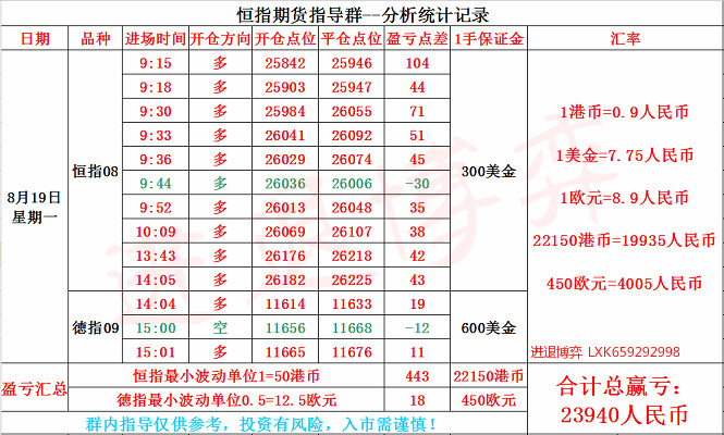 恒指8.23号早盘资讯: 投资者对经济前景持续担忧,并等待美联储主席鲍威尔的讲话。周四(8月22日)美股三大指数走势各异,道指涨0.19%报26252.2点,标普500跌0.05%报2922.95点,纳指跌0.36%报7991.39点。 美股指数涨跌不一,港股ADR指数则全日偏软,按比例计算,收报25947点,降101点。 恒指昨日没能继续向上,一个是来自消息面的落空,另一个则是先前涨势过强,当前所处的相对高位无以为继,使得部分跳空缺口得以填补。但尾盘出现整固走势,并没有“一泻千里”则说明恒指的韧性还在,也不需要感到过于悲观。 7月份议息会议纪要公布后,导致美国金融市场出现大幅震荡。美联储主