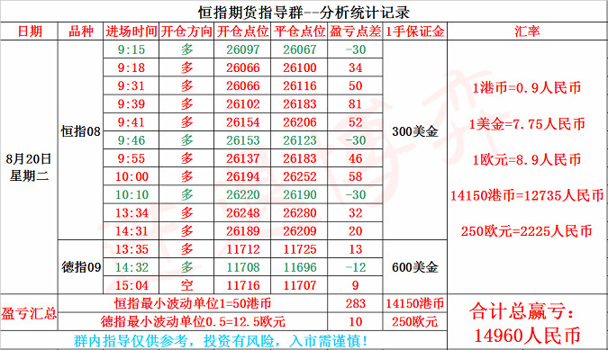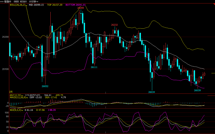 【恒指收盘】 8月20日消息,美股周一收高,美总统呼吁美联储尽快降息100基点,美联储Rosengren继续表示反对一步降息,但市场对他的评论似乎没什么反应。今日开盘,港股恒指低开0.13%,随后在26260点上下震荡。截至收盘,恒生指数(26231.54, -60.30, -0.23%)跌0.23%,报26231.54点;国企指数涨0.23%,报10132.77点;红筹指数涨0.68%,报4186.85点。 进退博弈:恒指,德指8.20号盘中交易总结 ①行情回顾: 恒指周二早盘高开低走后行情收窄区间震荡较长时间,上证开盘前承压26100一线压力后震荡跌势回踩一轮。上证开盘后行情企稳2607