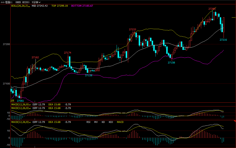 恒指11.8号资讯:贸易磋商再传利好,周四(11月7日)美股三大指数全线上扬,道指、标指齐创收市新高。截至收盘,道指涨0.66%报27674点,标普500涨0.27%报3085点,纳指涨0.28%报8434点。 周四,恒指先抑后扬,全日大部时间低位震荡,尾市出现急速拉升。截至收盘,恒指涨0.57%,报27847.2点,大市成交金额778.5亿港元。 从盘面看,恒指昨日大部分时间基本呈现盘整态势,尾盘受利好消息刺激突然拉升200多点。消息面上,商务部在新闻发布会上称中美双方牵头人同意随协议进展,分阶段取消加征关税。同时,美国有关媒体亦报道引述贸易磋商知情人士称,首阶段贸易协议仍未定案,但若能达