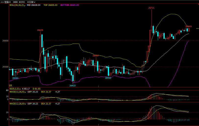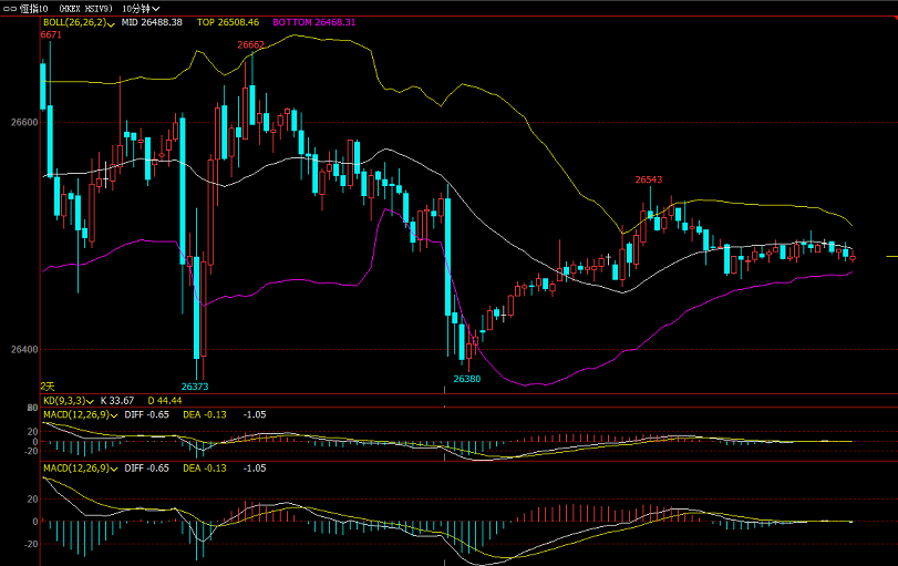 恒指10.17号开盘资讯:美股周三缺乏方向,标指跌6点,纳指跌24.5点,道指跌22.8点。英国脱欧谈判陷入僵局,欧洲三大股指中,德国DAX指数涨0.32%,法国CAC40指数涨0.09%,英国富时100指数跌0.61%。欧洲斯托克600指数跌0.14%。港股ADR指数按比例计算,收报26639点,跌25点或0.09%。大型蓝筹多数下跌,汇丰控股(00005)收报60.66港元,较港收市升0.56港元;腾讯控股(00700)收报328.55港元,较港收市跌2.45港元。 进退博弈:恒指10.17号恒指如何交易? 恒指周四早盘就目前看,早盘是一个小幅高开的行情,思路上看好早盘高开高走一轮,后续