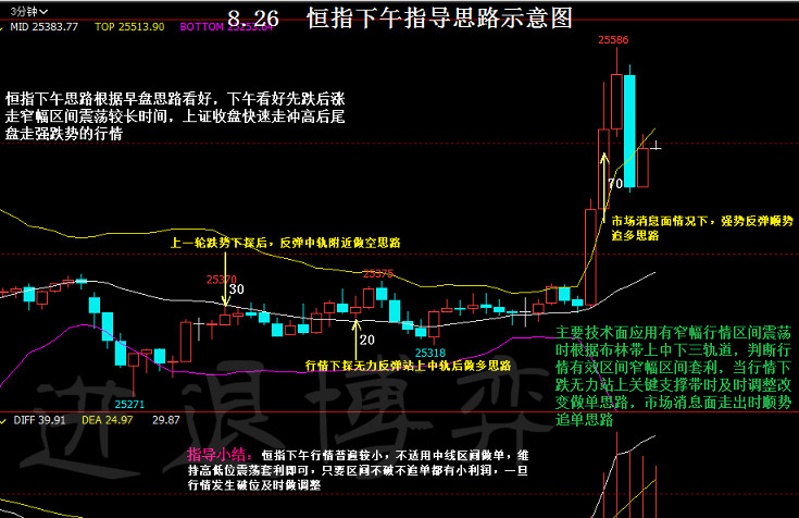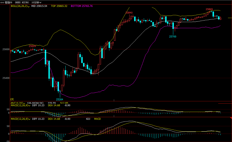 【恒指收盘】 周三,美股三大股指集体收涨,标指涨18.8点,纳指涨29.9点,道指涨258.2点。港股ADR指数小幅走软,按比例计算,收报25571点,跌43.96点或0.17%。今日早盘,恒指低开低走。午后恒指走高,截至收盘,港股恒指涨0.34%,报25703.5点;国企指数涨0.12%,报9992.64点;红筹指数跌0.56%,报4135.31点。港股上午收市前跌幅收窄至仅跌91点,主要为公用股和医药股有追捧所致。午后再继续向好,并止跌回升,恒指高见25707,最多升91点。 【恒指交易】恒指,德指8.29号盘中交易图 ①行情回顾: 恒指周四早盘低开打高一轮,承压均线压力位后开始窄幅区间
