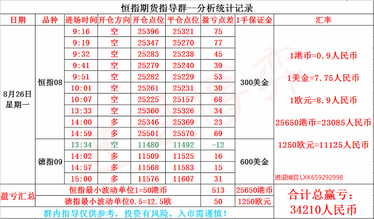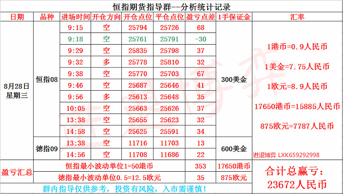 【恒指收盘】 8月30日消息,周四美股三大股指升幅均超1%,标指涨36.6点,纳指涨116.5点,道指涨326.2点。港股ADR指数全日走好。今日早盘,恒指高开低走,一度重返26000点,午后恒指走低,更是一度转跌。截至收盘,恒指涨0.08%,报25724.73点;国企指数涨0.91%,报10083.2点;红筹指数涨0.5%,报4155.88点。恒指本月跌7.4%,创5月以来最大月跌幅。港股上午收市前,收窄至仅升115点。午后未见有承接力,投资者相继沽货,恒指再倒跌,低见25536,最多跌167点。收市前略见造好而收窄跌幅。 进退博弈:【恒指,德指】8.30号盘中交易图及周总结 ①行情回顾: