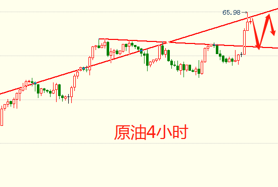 感悟投资真谛,交易暗藏风险;有时候等你看明白了,一切也都成历史了; 金融领域,要想获得利润,就必须得走在别前面。别人埋怨时,你反思;别人懊悔时,你总结,别人犹豫该不该进时,你果断出击。等待永远只会让你错过,再想追时,却掉进追涨杀跌的陷阱,这就是行情。 4.24周三原油 分析及建议: 分析:今日亚盘震荡,最低受到支撑65.8一线,最高66.1/2受到压制,短线四小时来看原油呈现上升趋势,布林带开口向上,原油回落也是受到上轨的压制,均价上5日,10日均线压制原油回撤,对此也只能回撤修整,再看小时线均价压制原油走空,但还在原油下方65.6/8一线与近期低点连成上升趋势,形态上形成上升趋势线,故此下