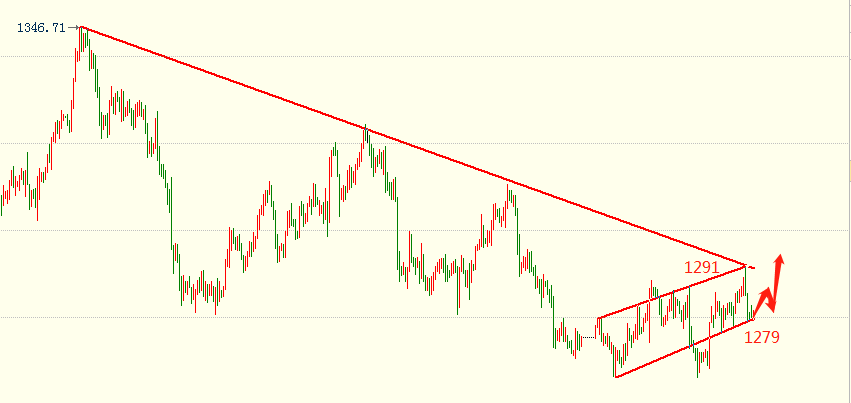 富人思维:用别人的能力为自己致富;穷人思维:只想着靠自己的蛮力致富。现在有一个机会摆在你面前,你可以选择继续观望,但你的生活依然不会有任何改变。一念非凡还是一念人间,选择在你。 5.9周四黄金分析及建议: 技术面分析: 美方拟于5月10日将2000亿美元中国输美商品的关税从10%上调至25%。升级贸易摩擦不符合两国人民和世界人民的利益,中方对此深表遗憾,如果美方关税措施付诸实施,中方将不得不采取必要反制措施。 黄金昨日亚欧盘强势上涨,美盘前期助力,后期最高触及1291一线动力不足回落,最低1279一线,短线4小时看目前一直处于低位震荡,趋势上仍然处于多头,形态上存在上探空间,我们可以看下下方