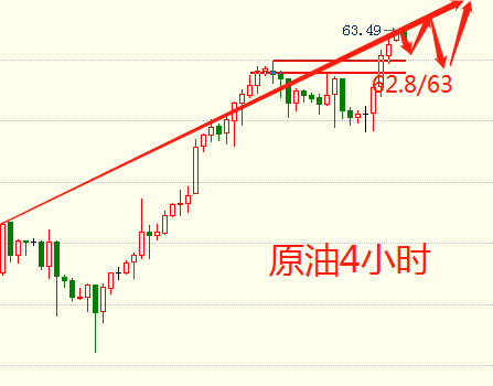 交易暗藏风险,有时候等你看明白了,一切也都成历史了; 金融领域,要想获得利润,就必须得走在别前面。别人埋怨时,你反思;别人懊悔时,你总结,别人犹豫该不该进时,你果断出击。等待永远只会让你错过,再想追时,却掉进追涨杀跌的陷阱,这就是行情。 4.8周一原油 分析及建议: 今日原油亚盘上涨承压走震荡,目前最高63.5,短线4小时看处于上轨阻力震荡,各均线处于低位盘旋,什么叫高处不胜寒,如果没有一定的专业能力真不知道什么时间行情出现反转,这也是大部分人亏损在原油产品的原因,那么此时怎么看原油呢?首先我们找出回撤的低点,个人建议初步定在62.8/63一线,此处是上周回撤蓄力突破的高点,也可用作回撤的支