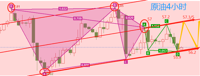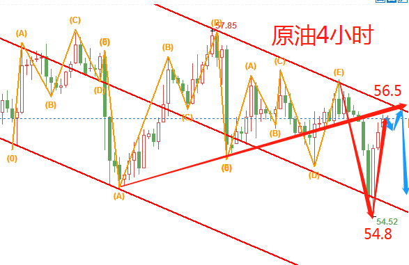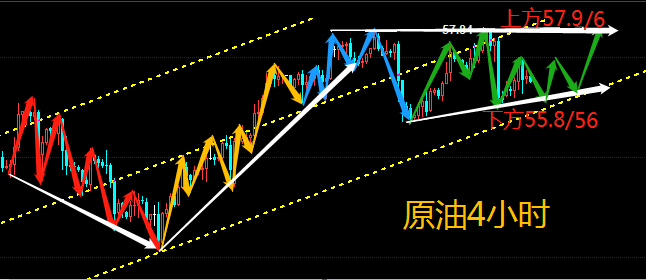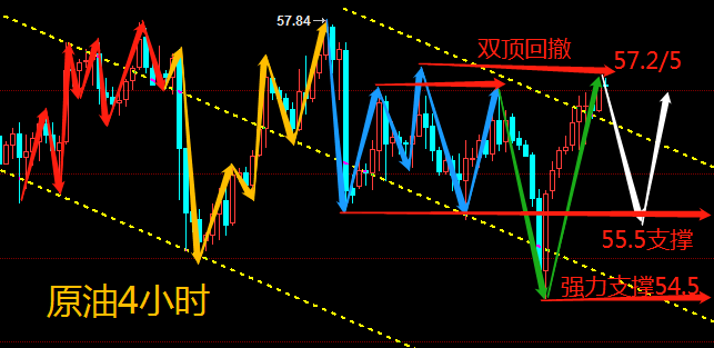 交易暗藏风险,有时候等你看明白了,一切也都成历史了;山不过来,我过去;在这里,最大的价值是时间,最大的风险是拖延!方向反了,停止就是进步,转身就是盈利。在市场很多人喜欢大行情波动,把握住行情就有机会赚到钱。我的价值就是能够给人投资者提供帮助,而不是模糊过日子,这样才觉得生命没有白白浪费。 3.12周二原油 分析及建议: 原油昨日冲高小幅回落再试探,最低55.9一线直接上行触及57一线回落56.4一线反弹在试探,但整体还是受压57下方。 原油压盘上涨再试探阻力强弱,虽有突破但始终力度上有所消化,短线4小时上看,原油处于上轨道阻力压制,原油本身处于一个下行通道只需求性上涨,等待回落只是时间问题,