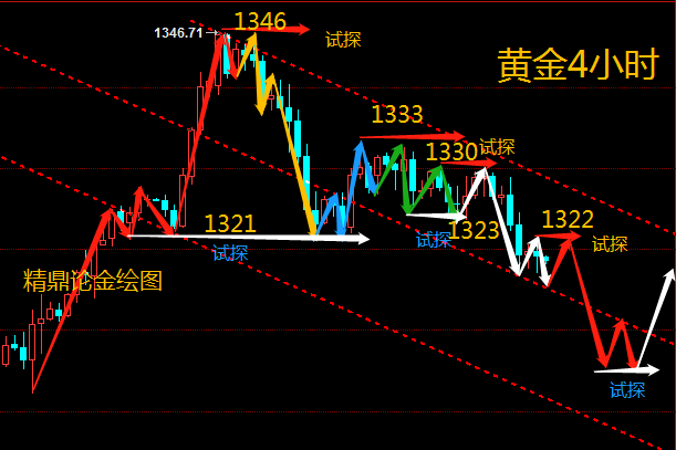 金融领域,要想获得利润,就必须得走在别前面。别人埋怨时,你反思;别人懊悔时,你总结,别人犹豫该不该进时,你果断出击。等待永远只会让你错过,再想追时,却掉进追涨杀跌的陷阱。这就是行情。 黄金2.27周三黄金行情分析及操作建议: 黄金昨日窄幅拉锯,最高触及1330.1,最低触及1323反弹,做日拉锯只为后期爆发,这是精鼎一贯理念,经过上涨短线反弹上涨1347下方承压下行,也是打开了精鼎看空的延续。昨日黄金1331一线空单进场,仅到1330就受到阻力回调,实盘早已提示空单进场,最低触及1323,昨天也提到下方支撑在上升,止盈是实盘实时在线提示。 黄金周线上看布林带上轨压制,日线上看黄金回调受132