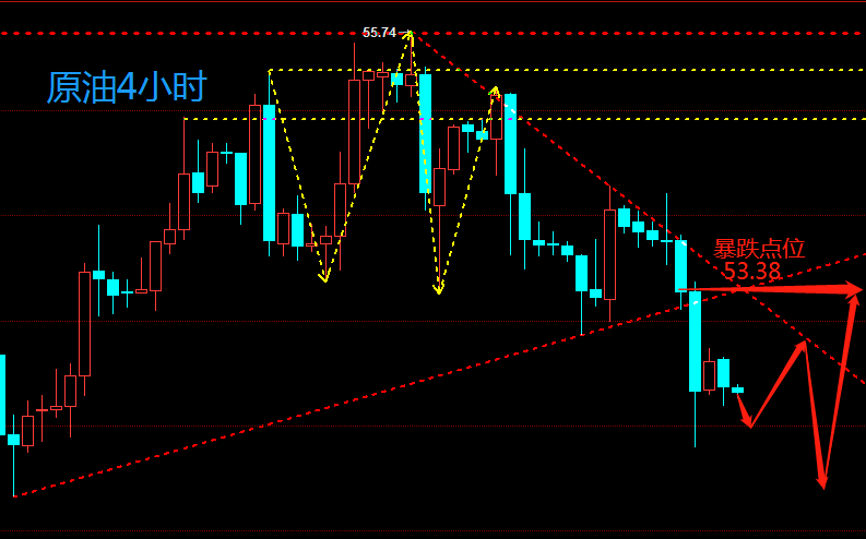 交易暗藏风险,有时候等你看明白了,一切也都成历史了;山不过来,我过去;在这里,最大的价值是时间,最大的风险是拖延!方向反了,停止就是进步,转身就是盈利。在市场很多人喜欢大行情波动,把握住行情就有机会赚到钱。我的价值就是能够给人提供帮助,而不是模糊过日子,这样才觉得生命没有白白浪费。 周三2.13原油思路及操作建议: 昨日原油受沙特减产通告及欧佩克月报影响最高触及54一线回落最低52.9一线,这次也打破区间下行行情,但消息面始终是消息面,市场需求有所下滑,仅中国需求有所增加,因此原油止步在54一线,说明原油市场有进步回落需求。 短线图:四小时图上可以看到,原油区间放大,支撑压力互转,亚盘处于区
