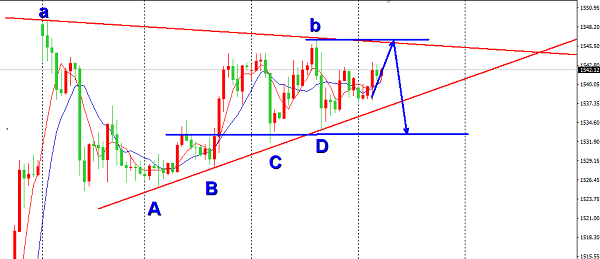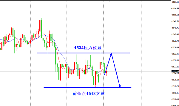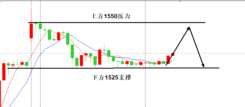 昨天黄金基本上是维持在一个震荡的走势中,早间小幅上涨之后,然后快速下探最低给到1533一线,1533刚好是周二一个第1次反弹高点位置,也就是走了顶底转换之后,然后直线拉升,在欧盘抵达1540一线。抵达1540之后,行情走势还是非常的强势,在美盘最终创下了盘中新高1546,然后快速下落,最低再次给到1534附近,昨天行情整体走势,也就是一个震荡格局。 黄金早间首先看到了一个空单机会,但是行情走的有点快,未及时进场,而后又快速反弹,反弹没有给到二次回踩确认进场的机会,所以昨天黄金只有在欧盘,给了一个1540的多单,最终也是在1546一线获利离场。昨天破位1540一线的时候,确实没有一个技术指标指