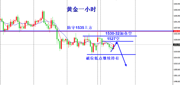 晚间需要注意的是,今天会提前休市,由于美国劳动节的影响黄金、原油于凌晨一点提前收盘,外汇方面正常交易,这一点在操作中大家需要注意一下,避免因提前收盘而单子被迫过夜。 请输入图片描述 由于晚间会提前收盘,所以美盘并不抱多大的希望,在操作中除非给到很好的点位,否则尽量控制进场。稍微持有就会持仓过夜。在目前国际市场错综复杂的条件下,尽量还是不要持单过夜。黄金目前还是持有,早间给到了1528~29的空单,如果手上有周天给到的1532的空单也可以继续持有,1534一线的压力还是比较大,所以高位空单没有理由离场,可以持有博取一个波段的行情,如果反弹破位了高点位置那么离场即可,这样也不会造成亏损,只是用利
