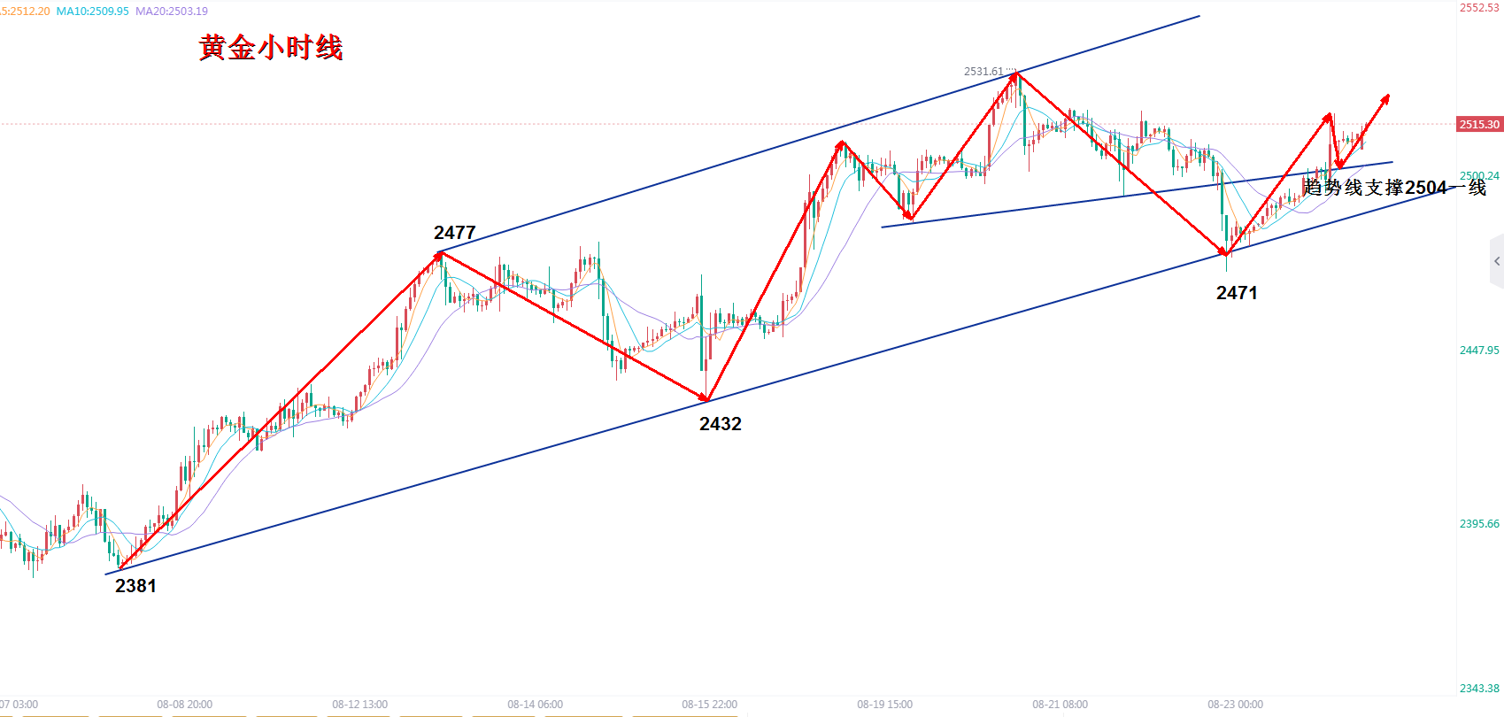 黄金市场的波澜再起,昨夜黄金在2471这一关键点位上稳稳立足,随即展开了一场强劲的反攻。小时线上的阳线不断引领金价攀升,尤其是在欧洲交易时段,黄金并未遭遇回调,反而是势如破竹,继续其上行之旅。价格一度触及2501的高位,恰好达到我们预先设定的第一目标反弹区域,这无疑是多头力量占据上风的明确信号。在这样的市场态势下,任何回撤都都是为涨势做铺垫。这正是我们多次强调的——强势修正后都会有拉升出现。 晚盘市场的目光聚焦于即将到来的美联储主席鲍威尔的讲话。金融市场,对于这位重量级人物的言论充满了期待与揣测。我们不禁要问,在鲍威尔的引领下,黄金的夜晚又将走向何方?为了深入解析这一谜团,我们不得不从多个维