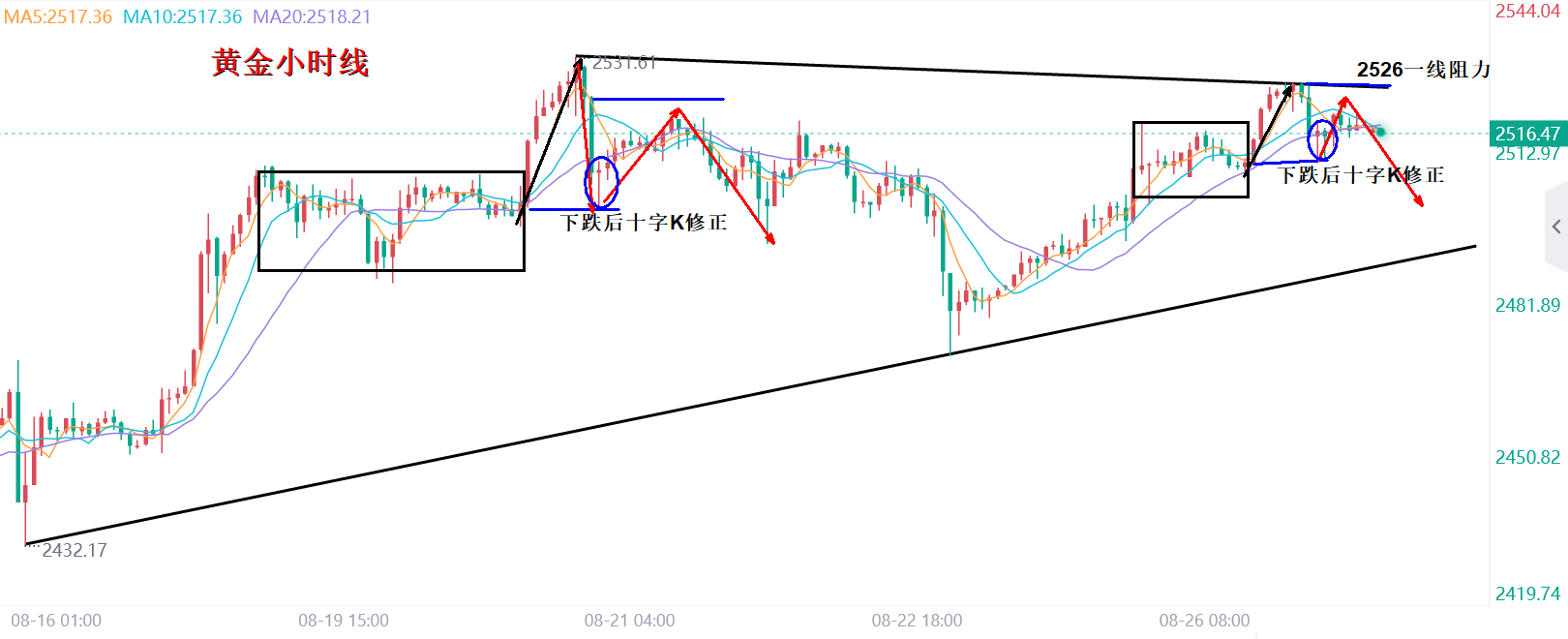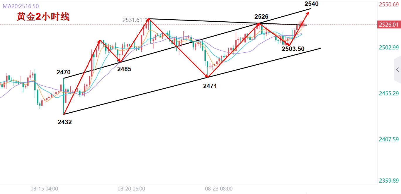 金价昨晚在数据的影响下快速下探,但也只是虚晃一枪,被随后2根大阳拉起并包裹。昨日日内本身以顺势多头拉起,美盘的回撤并没有打乱多头阵脚,再度上行最高测试2528.60一线,凌晨虽有回撤,但力度很小,偏离上方高点不远,运行节奏依然偏强,日内继续震荡中偏强看待即可。 接下来我们从昨晚美盘公布的经济数据,美国地区就业情况,奢饰品消费情况以及黄金技术层面来剖析: 首先,隔夜公布美国至8月24日当周初请失业金人数 23.1万人,预期23.2万人,前值由23.2万人修正为23.3万人。美国第二季度实际GDP年化季率修正值 3%,预期2.80%,前值2.80% 在美国公布强于预期的GDP数据后,美国两年期国