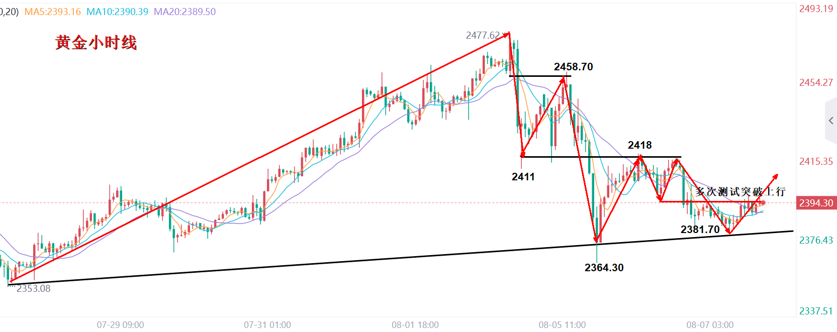 本周黄金市场的表现,无疑给投资者们带来了一丝压抑与困顿。一方面,市场情绪的反复波动如同潮汐般难以捉摸;另一方面,金价上升的空间似乎被无形的壁垒所限制,难以施展拳脚。昨日,金价在2380这一关键支撑位上顽强地站稳了脚跟,并以此为跳板,发动了一波反弹攻势。这一反弹不仅得益于趋势线的坚实支撑,更在于日内回调幅度的逐渐收窄,为欧盘和晚间时段的上行奠定了基础。然而,遗憾的是,尽管金价奋力冲击,但最高仅触及2408后便黯然失色,未能实现实质性的突破。随后,在美盘时段及凌晨时段,金价再度转弱,尤其是在凌晨时分,金价再次试探了昨日低点2380附近的支撑,这不禁让人对今日金价的走势充满了疑惑与期待。 为了