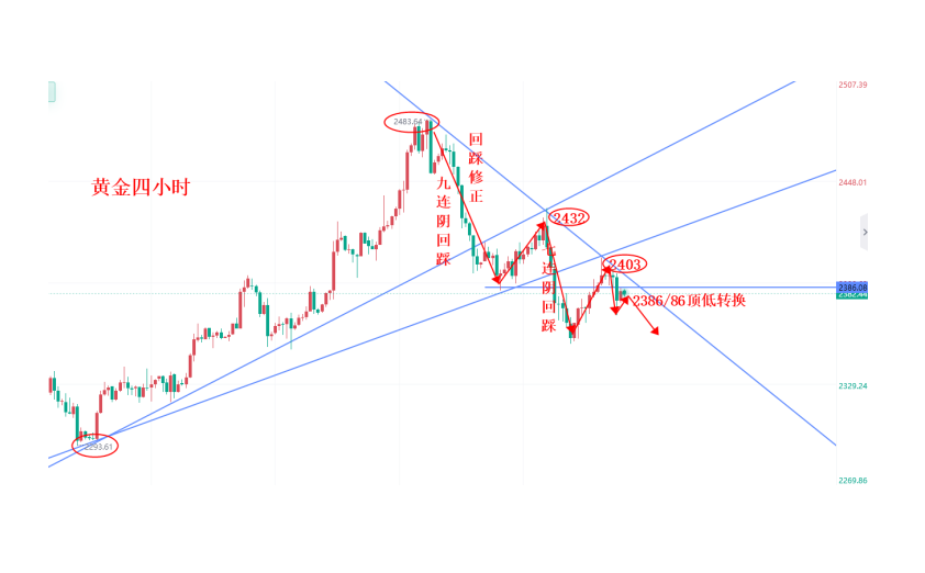 即便以黎紧张局势陡然升温,导致现货黄金在本周开盘时出现跳涨并站上 2400 美元上方,但其后市却将所有涨幅回吐并转为跌势,还一度跌破 2370 美元关口,最终收跌 0.14%,报 2384.76 美元/盎司。据悉,美国正牵头对以色列的报复行动加以压制,伊朗新总统也向以色列发出了警告! 面对黄金市场的此番冲高回落,我们不禁要深思其未来的走向。在我看来,黄金的修正过程尚未尘埃落定,仍有进一步下行的可能。这一判断基于以下几点考量: 首先,回顾今年黄金价格的走势,每当其勇攀新高,触及或超越2400美元的关键门槛后,市场总会经历一番深刻的回撤修正。特别是前两次分别向2430美元和2450美元发