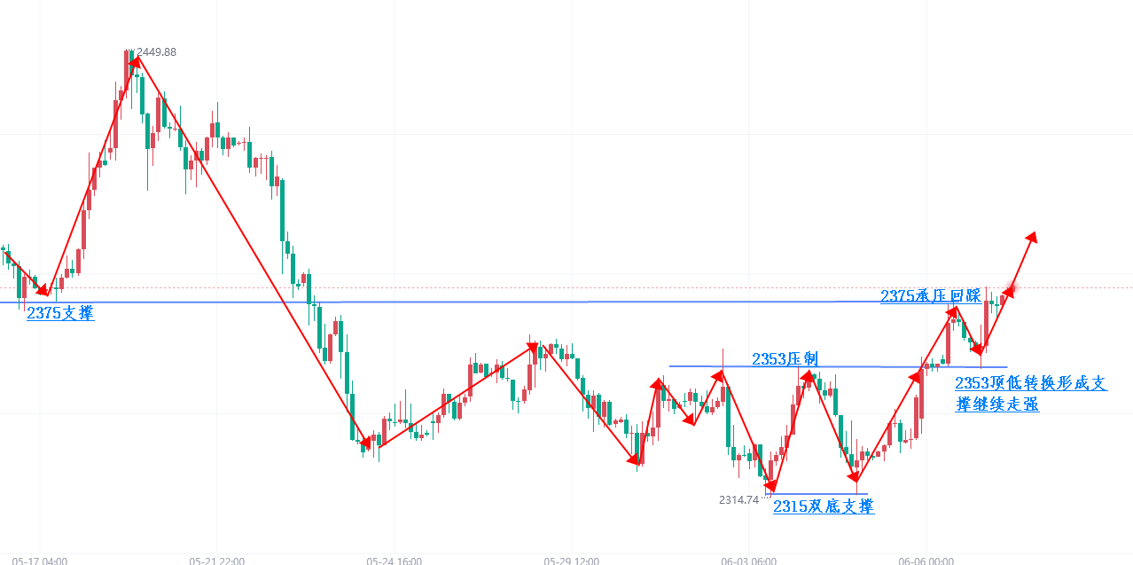 本交易日现货黄金市场迎来非常不寻常的一天,CPI数据与美联储决议的接连冲击,无疑将会为市场掀起了“风起云涌”的一幕。 从本周开盘以来,现货黄金并未延续上周尾盘的跌势,而是在周一触及2287美元一线后,迅速企稳,并呈现出双底反弹的态势。随后的两个交易日,黄金价格一路震荡上行,一度挑战2320美元的关键压制带。我们基于2287美元的双底形态,对反弹行情进行了布局,成功兑现了一定的反弹区间。接下来,我们持有的单子可以继续保持保本损的策略,寻找潜在的长线机会。 今日的焦点无疑集中在CPI数据和美联储决议上。经济学家们普遍预计,由于汽油价格的下跌,5月整体CPI环比增速将降至去年年底以来的最低
