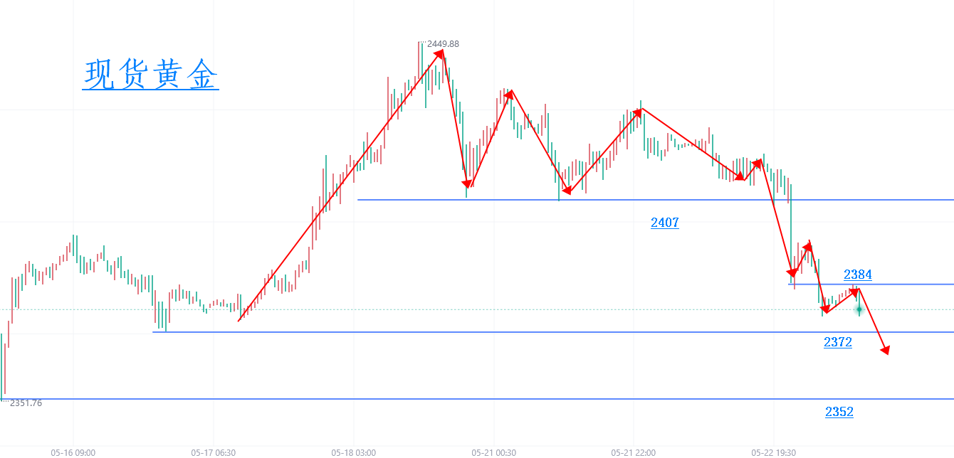 由于周一正逢“阵亡将士纪念日”,本周美国市场将迎来一个只有四个交易日的“短交易周”。再加上本周上半周消息面匮乏,这对于现货黄金交易员而言,他们可能会经历几个平淡交易日。 上一年度年末以来,投资者对美联储降息的预期抱以厚望,也给予几大的信心,现货黄金更是得益于降息预期影响,扶摇直上,而在上周美联储决议后,形势急转直下,降息预期消退,并且给出加息的可能性依然存在的信息,现货黄金遭遇相当大的冲击。不过,在经历了一系列的回落之后,盘面价格已逐渐重新趋于了稳定。 本交易日开盘后有2332美元一线走高至2348的上周尾盘压制点,再次遇阻,目前回落至2338美元位置。好的一方面是,在盘面价格在23