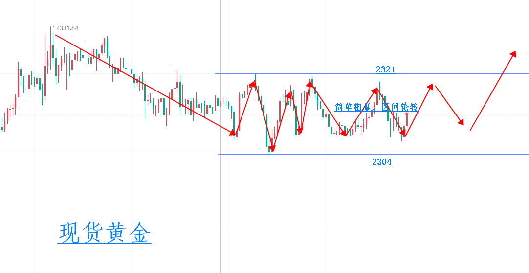 早间盘面我们直接选着在2308给出短多入场提醒,对日内行情的定义就是区间,围绕下方支撑2304/08支撑带多,围绕2320一下压制空。午后盘面也是顺利冲高到2320美元位置回落,再次回到2308一线,完全卡在区间之内。 随着盘面价格在上周回撤2382下方形态探底回升,三低支撑明显,下跌举步维艰,连续多个交易日再没有下行动作,本周除周一开盘回踩一次2292之外,一直保持在2300上方波动,离低点2277渐行渐远,这显然不是弱势下跌形态。同时我们反复强调本轮下跌就是上升后的回踩修正动作,修正不改强势,反而是为了后市更好的涨,回撤积蓄足够能量修正完成后,必然是继续低多,当下波段长线多单已经入场