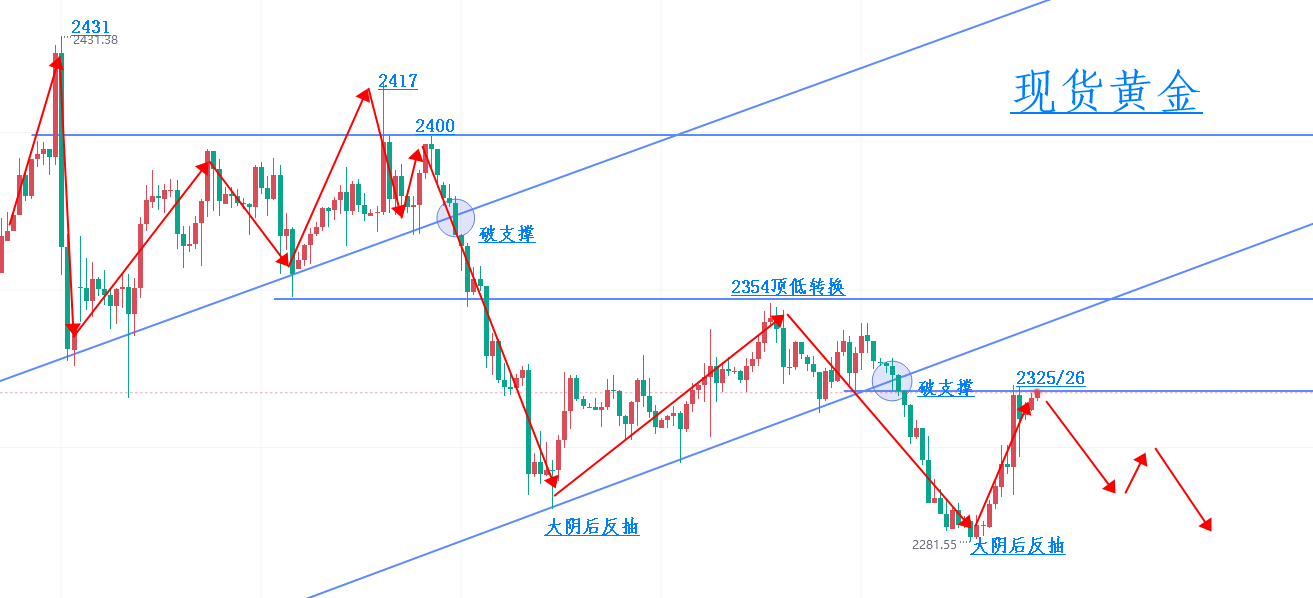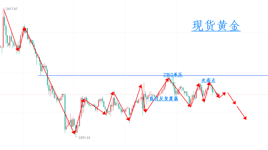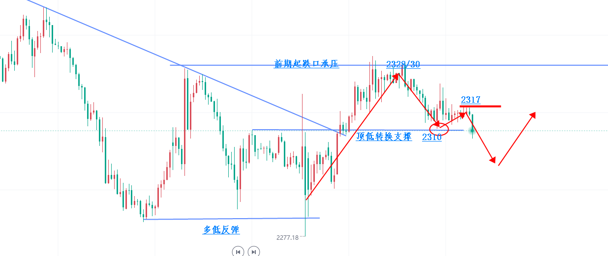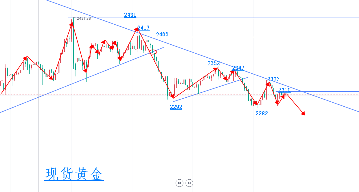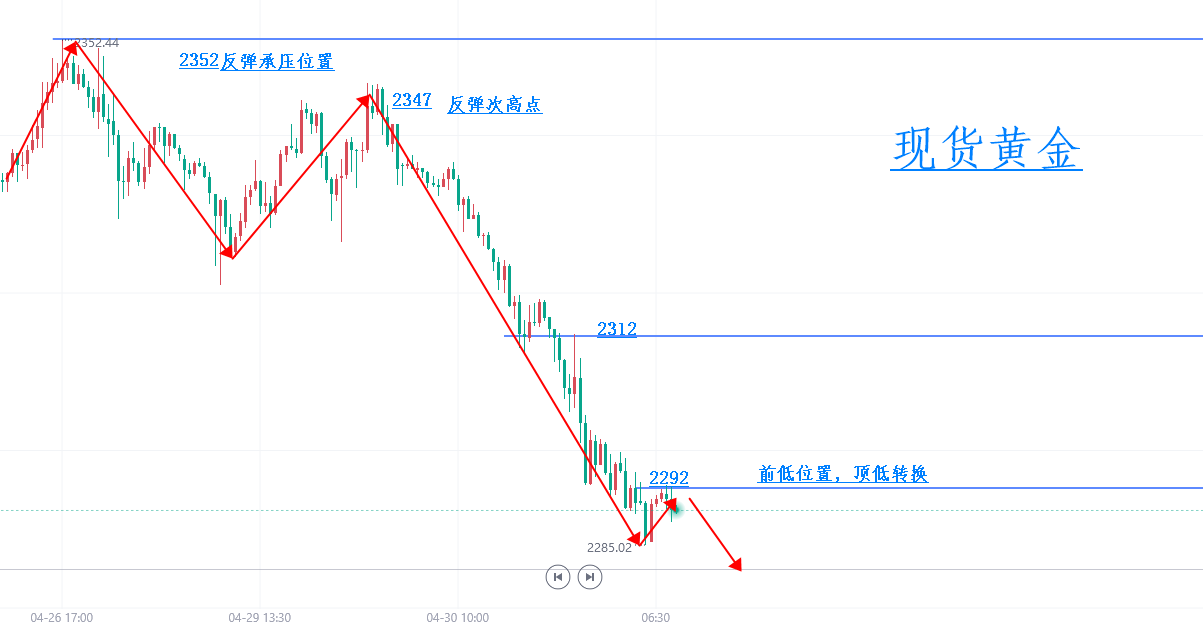 近期金价坐上“过山车”,本周现货黄金开盘以来有大幅度回落,但也伴随着强力反抽,大区间波动,迂回震荡下行,上一交易日振幅高达35美元之多。昨日早间盘面承压2327美元后开始回落,欧盘顺延下跌,美盘时段现货黄金价格一度跌至2285.43美元,但随后金价开始震荡反弹,最高一度触及2309.47美元,最终收盘站上2300美元关口,日线收阴,双阴加阳,下修形态保持延续,调整依旧未完成,依旧围绕修正来看待当下的走势。 美联储主席鲍威尔周三重申,在将借贷成本从二十年高位下调之前,需要有更多证据表明通胀正在降温。他也没有表示今年可能降息或利率处于峰值,而他此前曾说过。周五的非农就业报告预计将显示4月份非