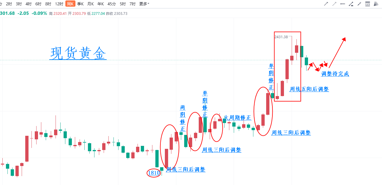 上周现货黄金整体保持下行走跌态势,周初震荡后大阴收线,周三转阳后继续转阴回落,周五非农利多并没有扭转颓势,而是继续走弱,并刷新低点至2277美元附近,最终收线在2300美元整数关口一线,周线连阴下行修正。 美联储5月利率维持不变,鲍威尔表示下次会议不太可能加息。美联储5月议息-维持利率不变,承认近期通胀进展不顺,官宣6月开始减缓缩表步伐;鲍威尔表示,下次会议不太可能加息,降息与加息各有路径,具体取决于数据,获得更大信心以进行降息的时间比之前预期的要长,目前来看推迟降息可能是合适的。推迟降息并非不降息,只是时间周期的推移,降息是肯定,时间点不确定,这对寄予厚望等待降息,积极做多的投资者来讲