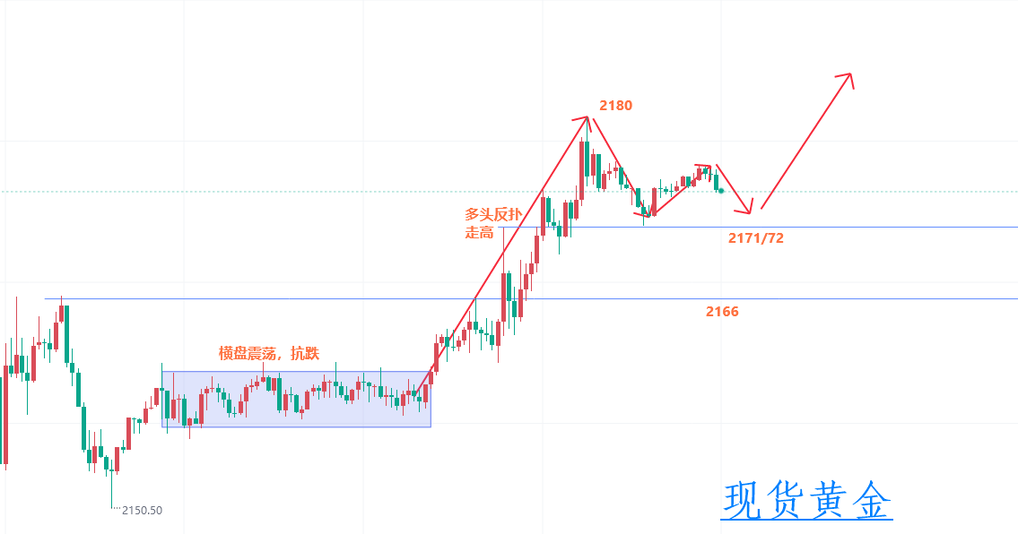 现货黄金盘面价格在2150形成探底回升后,反弹围绕2158到2162位置反复震荡,表现出较为明显的抗跌情绪,所谓逆水行舟不进则退,进而在下跌无力的情况下,多头反扑,一举回到2180一线位置,这也是周二起跌位,收复所有下跌空间,而这一反扑又伤了多少做空的心?不管是2160,2165甚至2170得空,一车拉走。 而在上一交易日抗跌情况明显,下跌乏力的情况下,在2160位置我们果断反手开多,冲高2170后获利减持,同时回踩2164/65再次拿多,盘面价格如期给到2180目标位,未离场的早间2176离场,完美把握整个反弹空间。 对现货黄金的长期预期我们一直保持乐观的看多太多原因有几个方面: