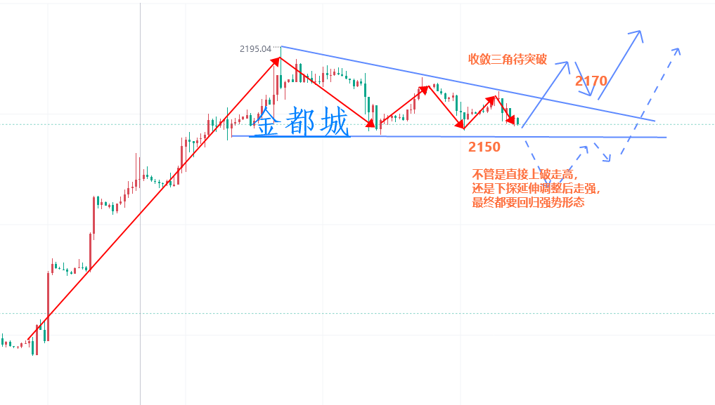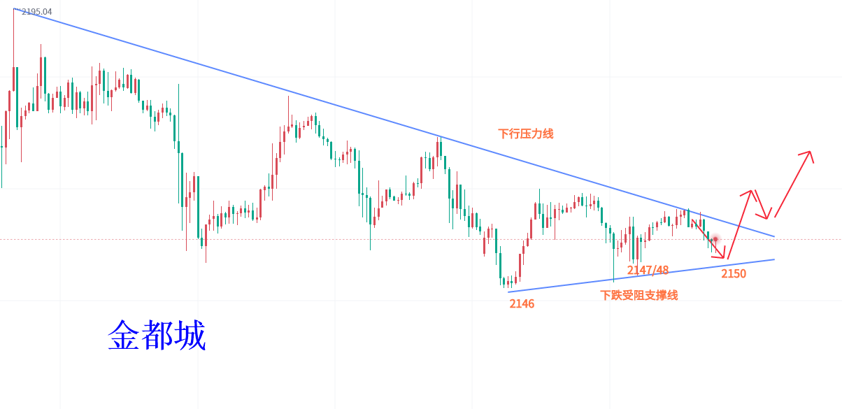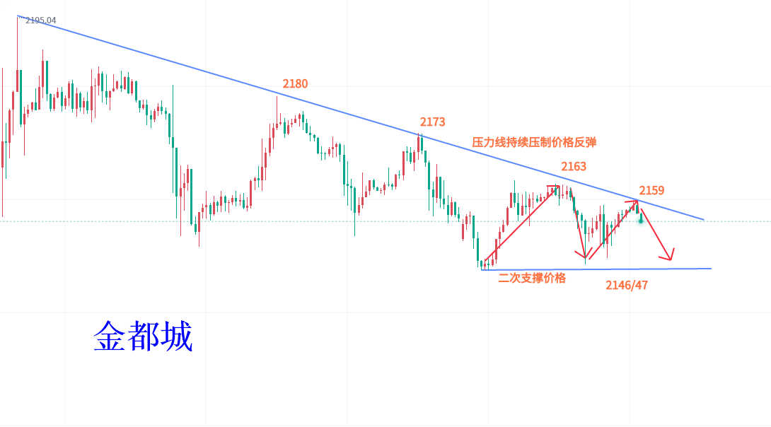 本交易日早间盘面我们围绕时间循环给出先空回落的分析参考,现货黄金盘面价格也是承压下降压力线回落,盘面价格目前最低给到2152美元一线,那么对晚盘的行情,我们应该怎么看? 本周周初在跌破2150美元的关键支撑位置后,盘面价格仅仅下滑到2146美元止步,并没有出现放量下跌,这显然不是弱势的走法,再加上连续的回踩都没有刷新2146美元的低点,反而低点出现逐步上移的情况,这个时候下跌表现明显吃力,再加上当下的行情本身就是强势的回调,只是回眸一笑,走空走单边下跌不太现实。当然空头最大的机会,或许最大的希冀就是晚间的美联储利率决议,这次利率决议已经是名牌,铁定不降息,虽然不降息是利空,但最多最多