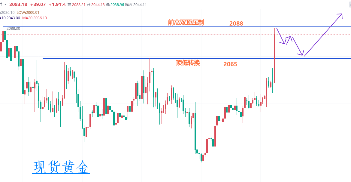 二月再见,三月你好! 二月的尾声,PCE给黄金送来一份大礼,多头更是好比久旱逢甘霖,一举突破2040美元压制带,在PCE数据公布后一度大涨近20美元,冲击2050美元上方,为2月2日来首次,尾盘随着消息面影响的淡化,最终盘面价格回撤2044美元位置收盘,日线以一根上下影线较为明显的纺锤阳线收线,收盘在前期承压高点2042美元之上。 PCE数据是个好消息,一定程度上提振了投资者的乐观情绪,表明美国经济基础稳固,美联储在控制通胀方面做得非常出色,如果目前还没有软着陆,那么软着陆很快就会到来。 美联储今年的票委、克利夫兰联储主席梅斯特(Loretta Mester)说,周四公布的通胀数据显