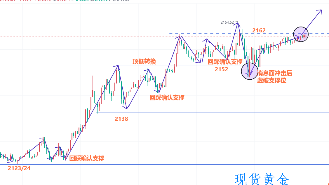 现货黄金市场用继续上扬,作为对鲍威尔的言论回应。在经历了四天的暴力拉升后,金价突破历史高点。刷新历史高位至2152美元位置。日线方面再次以长阳收线,四根长阳一柱擎天,多头已经保持连续六个交易日的不间断拉升。 本周拉升幅度已经有80美元之多,三个交易日,三张回调空单,六张多单全部实现利润,有效的把握住本轮上攻,短线布局实现九连捷! 数据方面,周三ADP报告显示14万的就业增长,略低于预期,但这完全在预测的误差范围内。就业增长依然稳固。薪酬涨幅呈下降趋势,但仍高于通胀率。简而言之,劳动力市场是动态的,但不会影响美联储今年的利率决定。 鲍威尔出席众议院金融服务委员会会议。鲍威尔在露面前发布