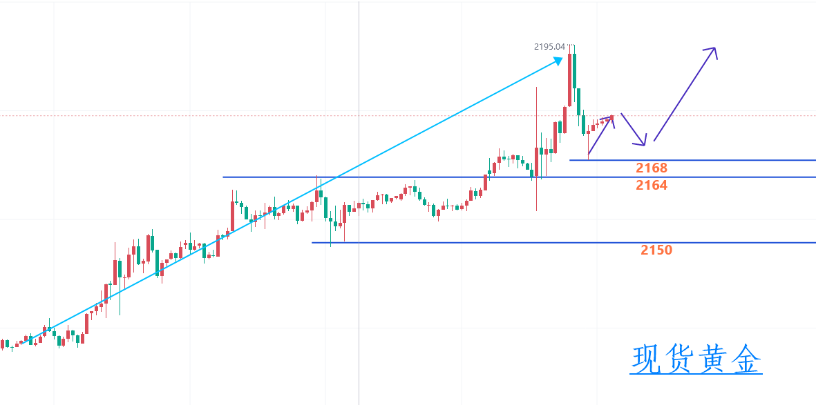 顺势而为,借势而进,造势而起,乘势而上。这句话出自《孙子兵法》,大概意思就是:在处理事情时,要顺应趋势、借助形势、制造声势、趁着气势,从而达到事半功倍的效果。体现的就是顺势借势的重要性。 本周的行情,把多头表现的淋漓尽致,如若这种走势不叫多头,不叫强势,那敢问何为多头?何为强势?至1984美元企稳以来,多头已经上升210美元空间,历时十八个交易日,真真的多头发动放量拉升,始于2042美元压制的突破,也就是说近六个交易日拉升一百五十美元空间之多,日线八连阳,周线三连阳,且是逐步放量的状态。 随着盘面价格冲击2195美元位置,逼近2200关口,那么接下的行情应该怎么做?下周还能多吗?