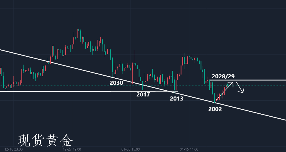 慢慢的像尊重自己一样尊重他人,承认自己的无知,接受自己的缺憾,愿意为自己的错误买单,但不后悔自己的任何决定,也不怀疑自己的眼光,之所以事与愿违,是自身的认知与能力还不足以,填充自己的欲望,支撑自己的梦想。成长需要时间更需要觉悟,不在于进入的迟早,在于顿悟的早晚。 美国第四季度GDP数据远超市场预期,美元走强。黄金一度跌破2010美元,但由于GDP报告显示美国通胀下降,且美国初请失业金数据表现疲软,金价自低点大幅反弹,一度突破2025美元,周四收于略高于2020美元的水平。日线延续阴阳循环形态,震荡区间依旧未被打破。 根据美国****周四公布的数据,第四季度实际GDP年化季率初值录得增