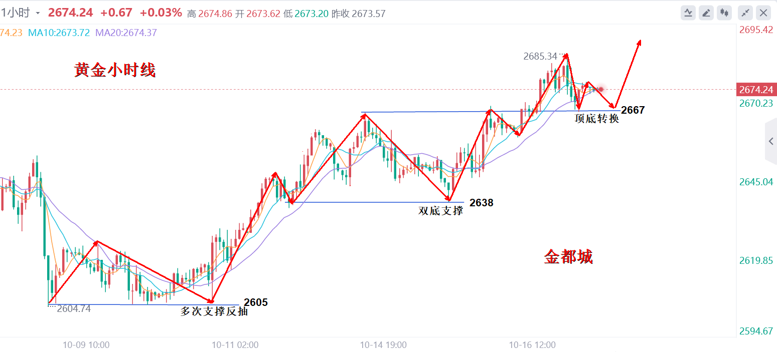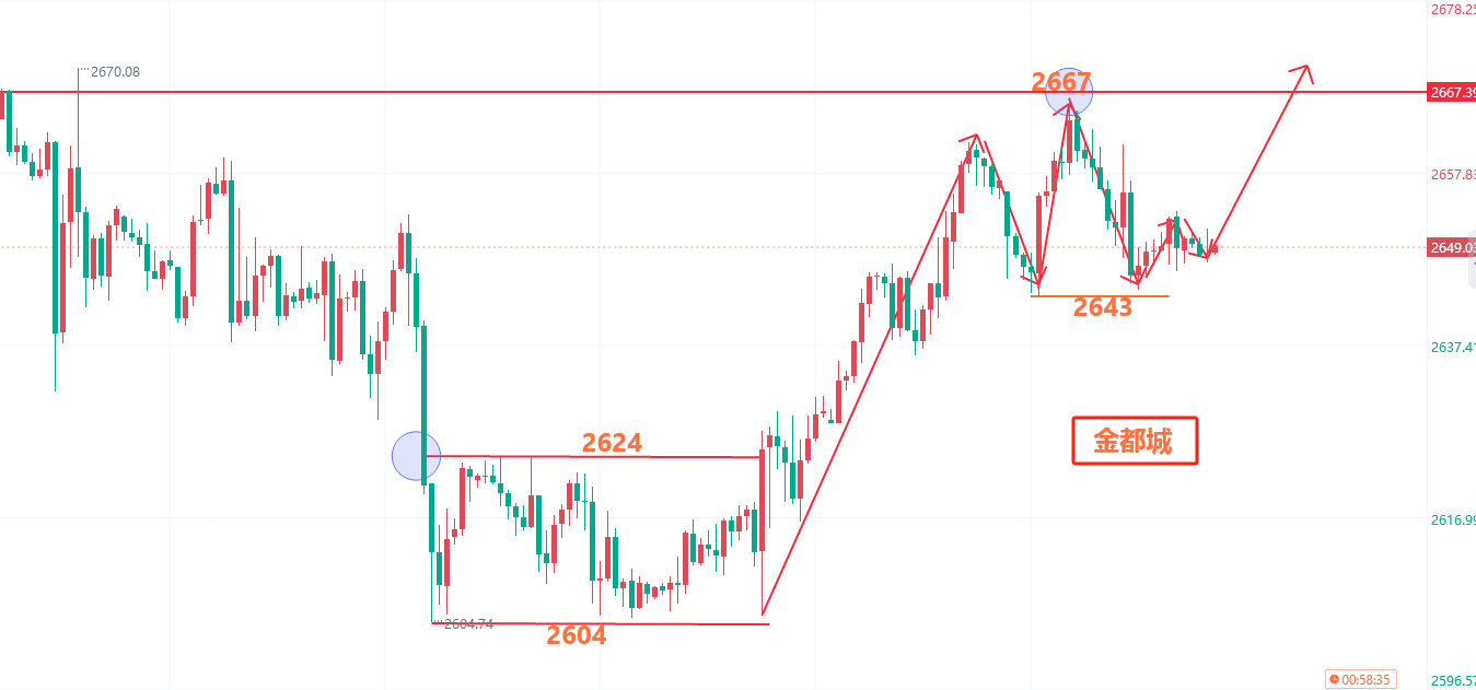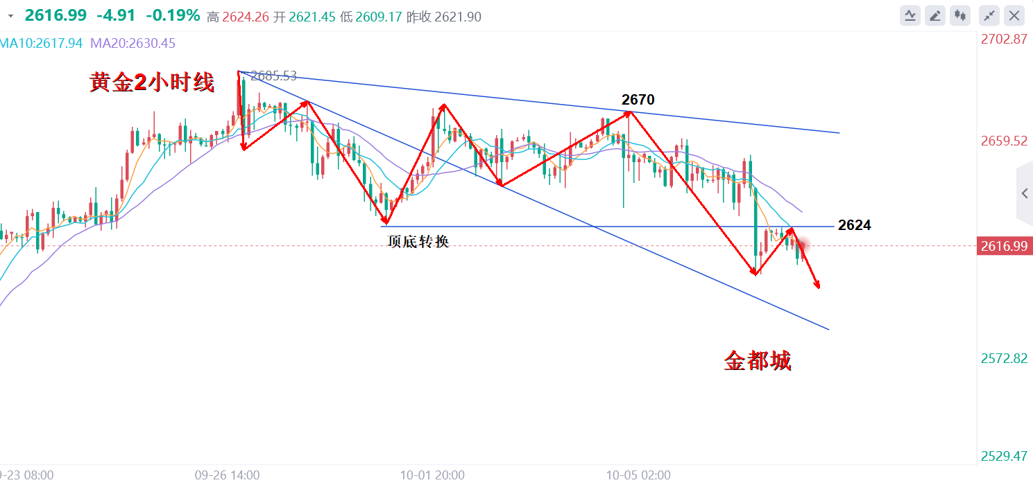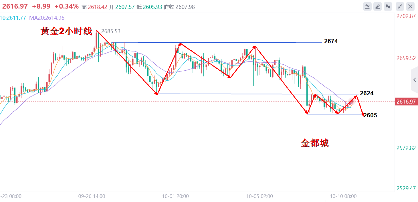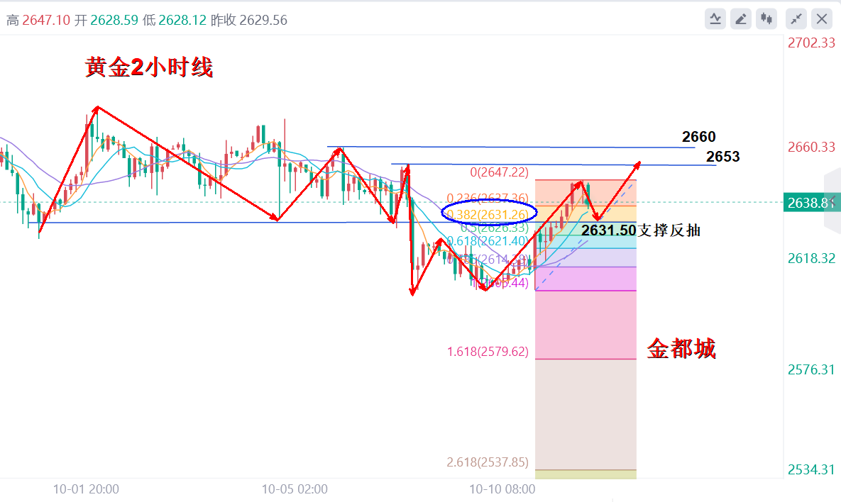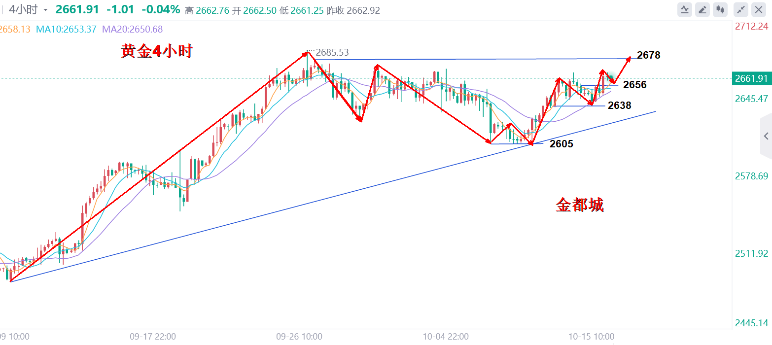 美联储于降息一事上应当比在九月份会议之时更为谨慎。倘若出现通胀低于 2% 的情况(不过这属于不太可能出现的状况),又或者劳动力市场出现恶化,那么美联储可以考虑提前降息。而要是通胀意外上升,美联储则可能会暂停降息。以色列领导人内塔尼亚胡向美国方面宣称,以色列将会打击伊朗的军事目标,而非其核设施或者石油目标。受美元指数持续走强的影响,现货黄金在向 2660 美元上方冲击之后出现了回调。 黄金在昨日欧盘拉升后美盘没有继续破高上行,反而继续回撤,以目前回撤的空间来看支撑在昨日低点2643附近,但是凌晨也没有出现较大力度的反抽,多头上攻动能减弱,但整体多头反弹节奏并没有改变,回踩企稳后按照震荡看涨节奏