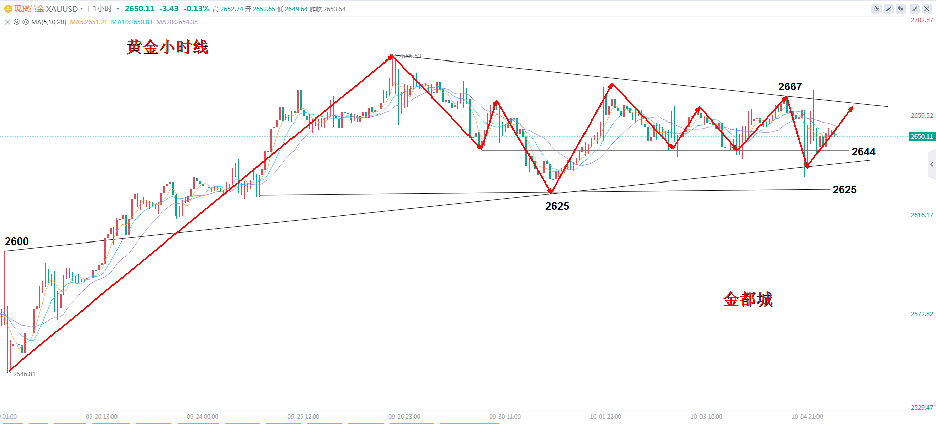 投资者对美联储再次大幅降息的预期逐渐淡化。此时,中东紧张局势不断升级,由此带来的避险需求成功抵消了美元走强所产生的压力,现货黄金陷入区间震荡之中。金价在2685.50回撤以来,多次反复性上下波动,近期连续2日日线报收小阴且下方都留有下影线,而且波动的空间并不大,整体形态依然处于收敛三角形的尾端,区间中部依托2655为中轴运行,日内继续看区间调整,基于在上方2663一线多次压制回撤,所以日内在非农前看循环回调,再做探底回升。 下面我们从美国隔夜经济数据,全球降息步伐节奏,以及金价具体走势来剖析: 首先,隔夜美国经济数据: 美国至9月28日当周初请失业金人数 22.5万人,预期22万人,前值由2