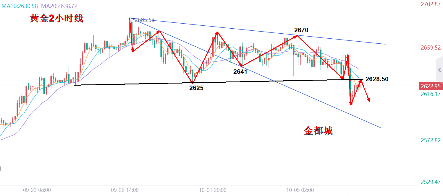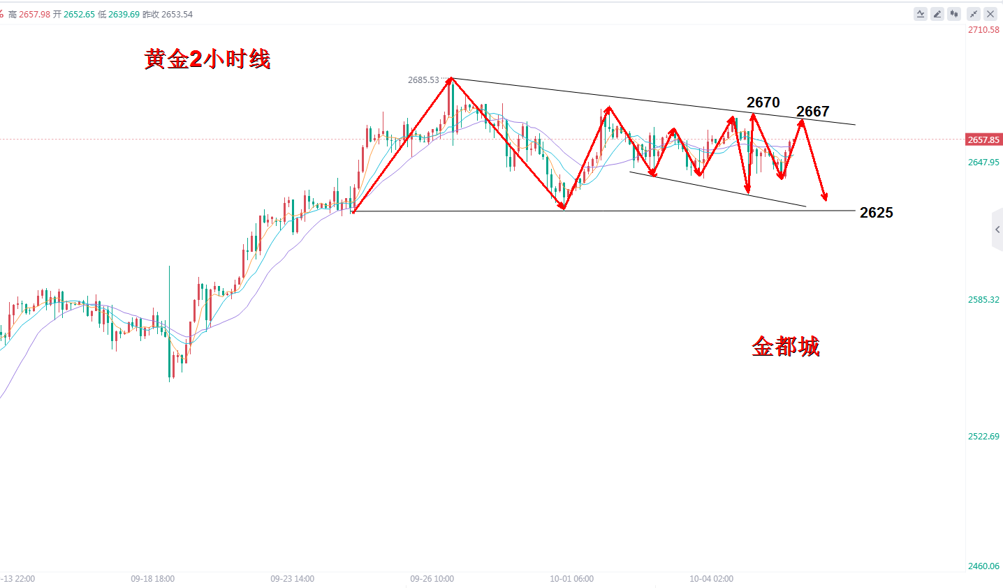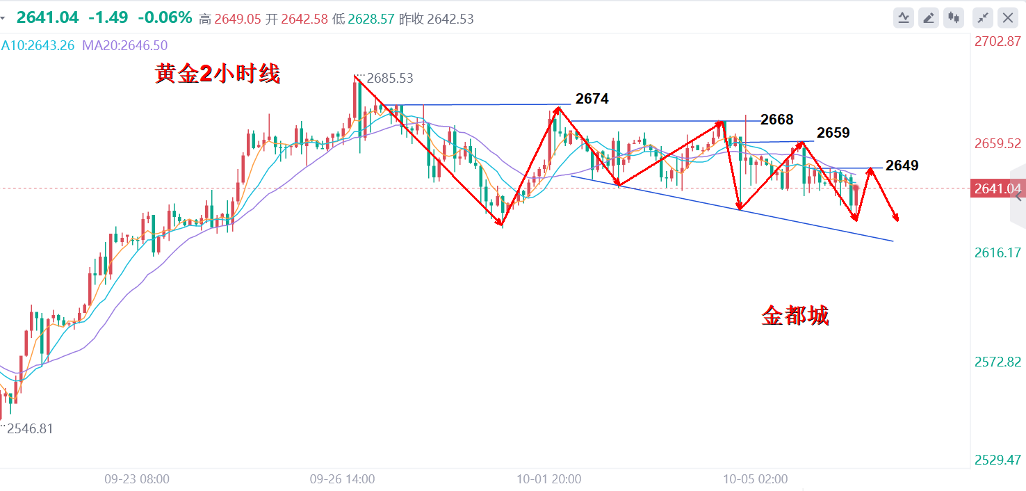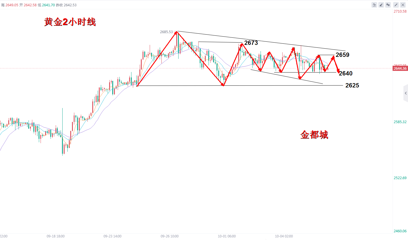 随着对美联储大幅降息的押注逐渐消退,现货黄金遭遇大幅波动,一度跳水近 50 美元。与此同时,真主党首次公开表示支持在黎巴嫩实现停火。而据美媒报道,以色列正在考虑对伊朗的能源设施发动袭击。 黄金昨晚走出我们预期的形态,不断下跌最低测试2605附近,亚盘两次博反弹都有十美元左右的空间,上行乏力,晚盘调仓围绕2649一线压制参与沽空跟随,最终有下跌表现。一方面基于日线处于粘合后死叉出现,另外上方高点不断压制回撤,反抽动能不断衰减,即便欧盘反抽刺穿亚盘高点2649一线,也只是虚晃一枪,美盘加大下行的力度。今日凌晨和早间反抽,但是反弹的力度并不大,形态依然偏弱一些,日内继续看回撤下行! 基本面方面: