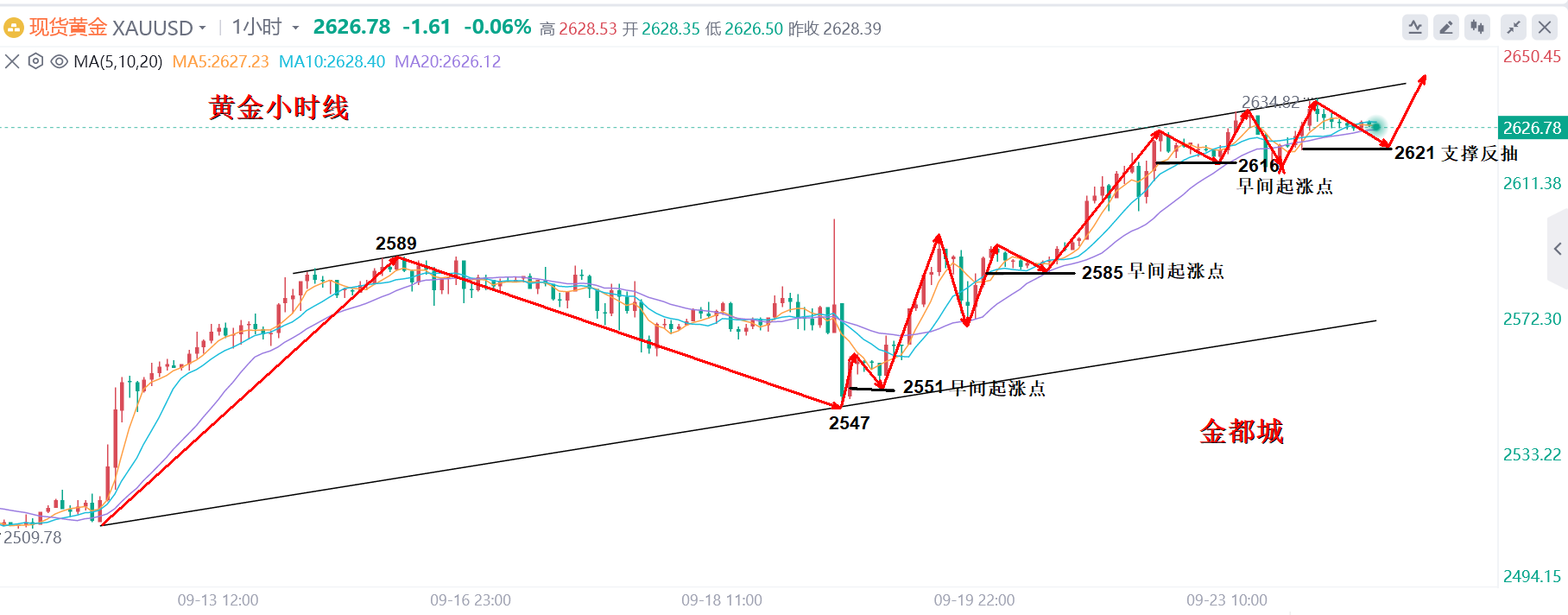 又是一个多头开心的一天! 早间回撤基本上没什么空间,随后开启拉升,午盘和欧盘连阳上攻,突破2600整数关口后依然没有下行修正。一般欧盘回撤力度越小,后面就还有空间,但是今天周五笔者想说,结合近期走势特点,晚间谨防回撤,短线尽量把握好利润,以落袋为安;波段长线方面多****意也按照预期做处理。 下面从影响黄金的基本面美联储降息后的红利,美债存在的市场风险以及技术走势来做具体分析: 首先,美联储降息红利延续,美联储降息后美元维持弱势,国际金银维持强势运行; 自2020年以来的首次降息幅度超过了大多数分析师的预期,这对黄金来说是一个利好,因为它增加了投资者对无息黄金的兴趣。BMI分析师在一份报告中