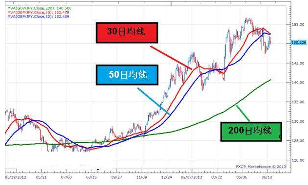 顶级外汇交易策略——双均线组合 外汇均线就是随着时间的推移,用特色的算法使价格的走势更加平稳。我们在外汇市场提到均线,就是指在过去某一段时期某一货币对的一系列的收盘价平均值连结而成的线。 皇马外汇 小编讲解外汇交易双均线组合的应用技巧: 双均线组合 双均线组合是由一条时间周期较短和一条时间周期较长的均线组合而成的均线分析系统。其中时间周期较长的均线主要用于预测和判断趋势,时间周期较短的均线主要利用其与价格和长周期均线之间的关系确定进出场的依据。 双均线组合的三种类型: 1、短期组合(3和10日均线组合或者5和20均线组合,只适用于短线交易,专业度要求高) 2、中期组合(5和60日均线组合或者