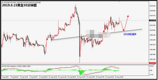 英国脱欧承压英镑,美元指数98.05区域空 黄金 昨日黄金正如笔者预期,在隔夜美股大跌和美债收益率倒挂的双重影响下,市场的避险情绪再度升温,笔者及时给出在1510/09区域参与黄金多头的思路,而美盘回撤1507区域,后再度上扬至1522区域,只要根据笔者策略参与多头者成功获利10美元以上。 黄金近期的强势主要受益于避险情绪的支撑,随着美股大跌,以及贸易震荡争端挥之不去,投资者对于全球经济增长的担忧情绪增加,这为黄金的上涨提振了支撑。从技术面来看,隔夜美盘二次走高后回撤1510一线,目前1510区域已经成为日内多空风水岭区域,因此,今日价格回撤1510区域参与多头为主。 黄金策略:1510区域