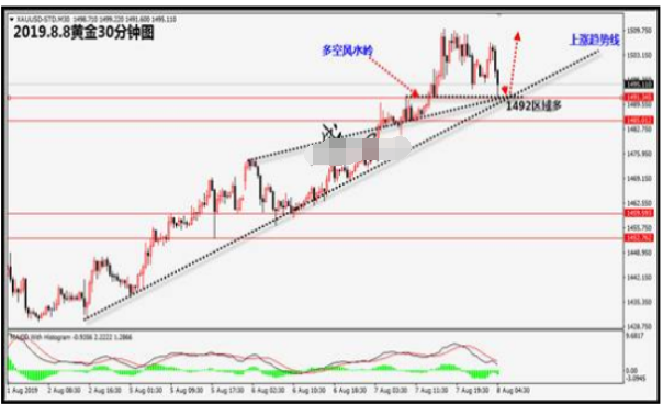 8月7日外汇市场行情点评 走势点评: 目前影响市场的主线是两条,一条美联储降息力度相关,由于周一开始市场认为9月降息大概率,这刺激金价上涨。一条中国和美国贸易摩擦相关,引发市场避险情绪升温。所以在此背景之下,金价表现坚挺。笔者认为,黄金按照现在基本面有能力测试1500美元关口,乃至更高水平。当然看多是一回事。把握好完全是另外一回事。建议1是,由于现在波动大,所以建议操作的仓位减轻,同时止损加大。这样止损的话,亏损的总额是不变的。建议2是,更加严格的风控。有很多投机者其实是很合适参加这个市场的,比如很喜欢抗单。在震荡市场里面,也许这个问题还不致命,单边市场则是必然爆仓。建议3,不逆势做空,很多