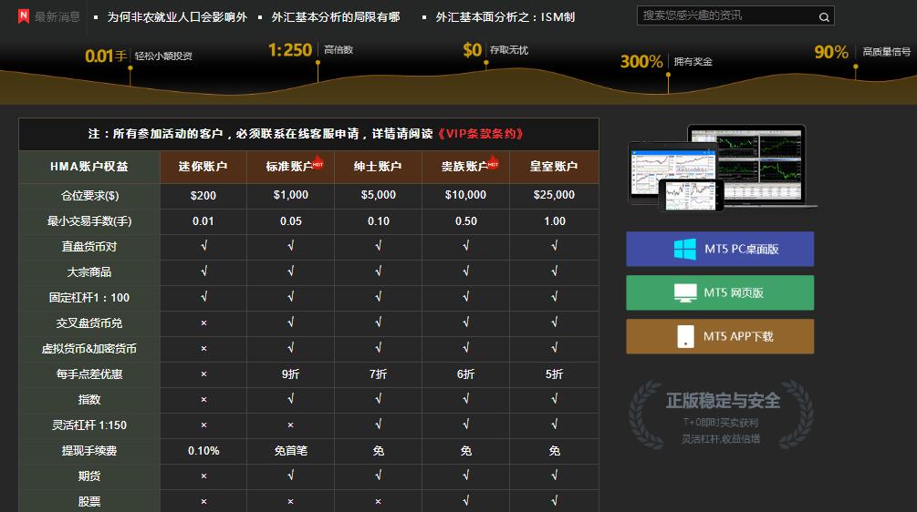 HMA Forex平台注册开户中心 作为外汇行业的全球十大交易平台之一,HMAForex平台对于从事外汇交易的小伙伴来说并不陌生,所以很多人也想访问这个平台进行浏览、开户、交易的操作。 为了防止不清楚的小伙伴被其他虚假的网站欺骗,下面我就教大家如何辨别这个平台正规网站,如何安全登录网站等。 一.HMAForex官网 HMAForex国际网站是hmafx。com,大陆官网网址是hmafx。com/simplified。 官网上主菜单栏有7项:“首页”、“交易终端”、“如何操盘”、“实盘活动”、“知识面”、“选择皇玛”、“交易手册PDF版”。侧边栏也有7项:“在线客服”、“HMA群聊”、“快捷登