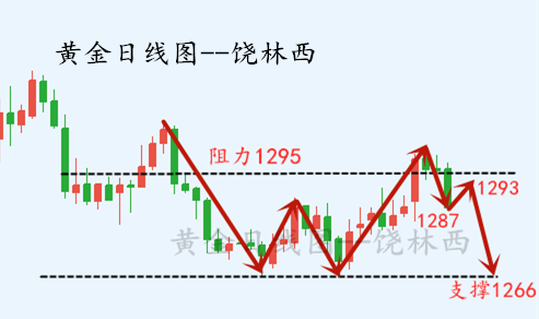 交易不能随便,也不能听天由命,而是要在努力之后看淡得失,用豁达的心态去面对每一笔盈亏,尊重别人是慈悲,尊重自己是智慧,尊重交易则是修行。 一个人行,不如一群人行其实,市场上这么多分析师,林西可能不是最厉害的那一个,但是,是值得你最信任的那一个。我相信人和人之间是有磁场的,既然你可以看到林西的文章找到林西,那么说明,冥冥之中我们之间是存在联系的,我们身上一定有相似之处。我也会珍惜我们之间的缘分和彼此的信任。 林西来解盘:黄金从日线图来看,目前1287附近存在强支撑,1287是一个短期小支撑,林西认为黄金短期可能会再次反弹至1293附近,然后再一次进行下调,1293附近进场的空单,正如我之前说的