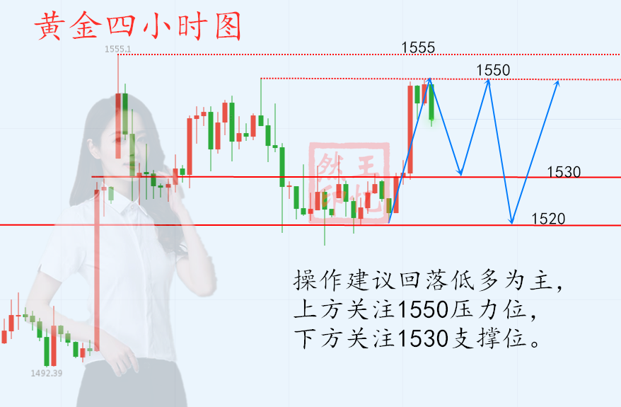 王忆然:9.4黄金暴涨不知如何操作、今日思路布局 在这个市场中,最公平的就是行情。所有的投资者面对的都是一样的行情。然而,面对同样的行情,投资者必然会做出不同的选择。当行情像浪花一样一波接一波的打过来,有的人面对机会,做好准备,迎面而上,止盈获利;有的人害怕恐惧,毫无准备,反而被行情.杀了个措手不及。行情对每个人都是公平的,就看你怎么面对。若你是前者,我可帮你锦上添花;若你是后者,我可助你一臂之力 【【【【 黄金技术分析操作建议 】】】】 黄金昨日受到经济数据不及预期,降息50基点的呼声再起,导致黄金强势拉升至前高位置,1550压力位置不追多,耐心等待回落再进场! 黄金昨日维持