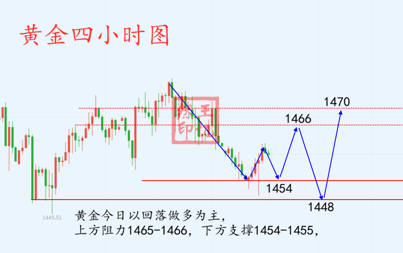 王忆然11.28黄金开启震荡模式,1464继续空. 黄金亏损不可怕,过去的就让它过去,未来就让它快点到来!好好休整自己,随时整装待发,忆然始终不离不弃陪伴在你身边!陪您一起盈利,重镇雄风! 【【黄金多空看不清?这样做才能盈利!】】 技术面上,日线虽然黄金走弱,但是并没有破位1450低点,目前金价小幅反弹冲击MA5均线1457阻力点,如果早盘价格再度冲上1458美元,那么黄金还将继续在小区间内来回的波动,技术面指标上整体偏弱,所以整体来说金价还是弱势占优。4小时上,布林带中上轨也是一直向下承压,布林带越缩越小,只等一波趋势性的爆发走出。小时线上由于早间的上涨,短线有形成双金叉反弹
