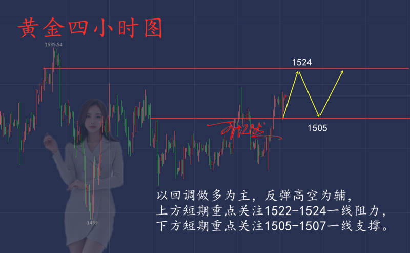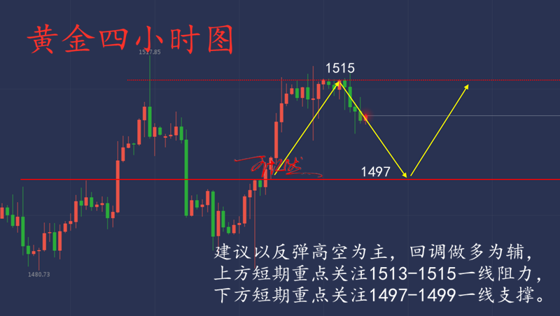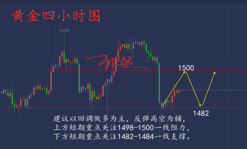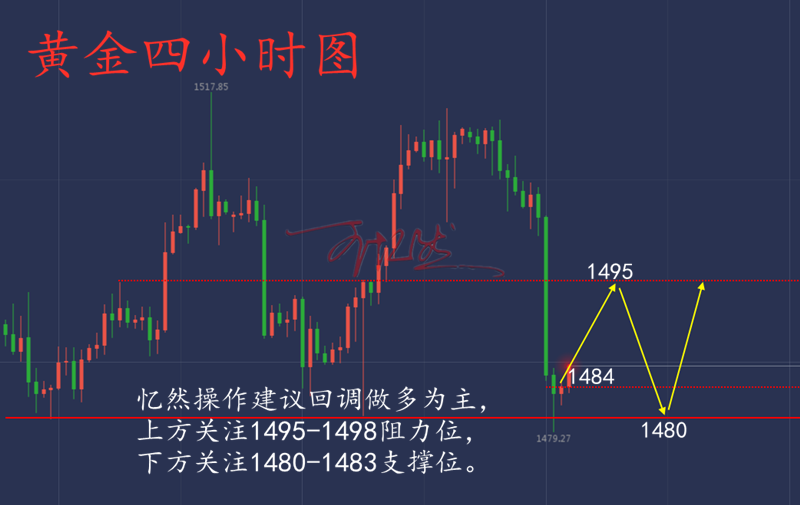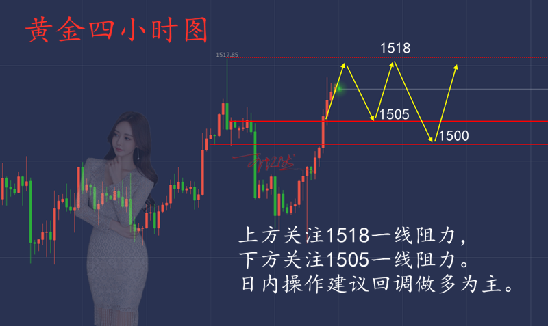 王忆然:11.1黄金月第一天,非农带你挽回损单 投资生涯,每人都会有陷入迷茫的时候,既然你现在有幸了解了投资的魅力,那就不要轻易放弃,哪怕只是用最小的成本去尝试,有收获的往往是坚持到最后的人。最后还是那句话,盈利也许会迟到,但一定不会缺席! 【【黄金走势分析】】 技术面上,黄金的利益于美国利率再次降息的消息利好,日线连续走出2根大阳线,将K线从布林带下轨直接拉升至布林带上轨,目前一众均线也是向上勾头,MACD快慢线也是下次金叉向上,整体趋势开始朝多头发展。4小时上也是走出双金叉上涨状态,如果价格破位1518美元,还将下次U行反转形态,所以日内点管关注黄金是否会冲破前期高点1518美元。小时线