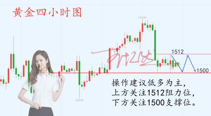 王忆然:9.27黄金周线收官,实力现价单跟不跟 投资生涯,每人都会有陷入迷茫的时候,既然你现在有幸了解了投资的魅力,那就不要轻易放弃,哪怕只是用最小的成本去尝试,有收获的往往是坚持到最后的人。最后还是那句话,盈利也许会迟到,但一定不会缺席! 【【【【黄金走势分析】】】】 技术面上,黄金在周三晚间走出一波大跌后,周四整天都处于修复状态,目前没有延续向下的迹象,并且在1500美元形成双底,如果黄金后续能够突破布林带中轨以及一众均线镇守的1510-1513美元阻力点,那么黄金还有继续上攻的机会,反之如果后续跌破1500,那么可能会再次试探底部支撑点1480-1470区间。4小时MACD弱势能量柱开