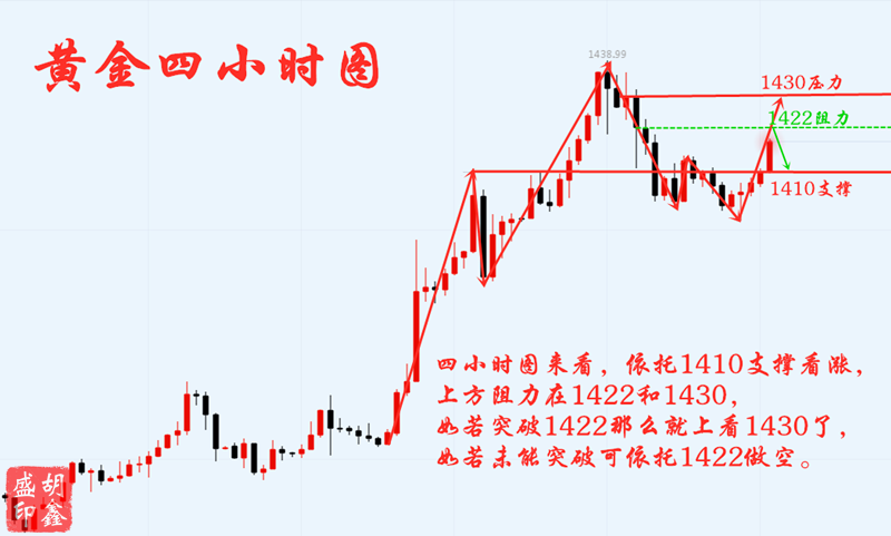 我是胡鑫盛,一个你值得信赖的良师益友! 若非生活所迫,谁愿意把自己弄的一身才华,自身掌握的技能,往往无法满足自己的欲望。努力到无能为力,拼搏到感动自己。俗话说:知我者谓我心忧,不知我者谓我何求?人生为什么要努力,因为你想要的东西太贵。我是胡鑫盛,在你任何时候需要帮助的时候都愿意帮你的那个人! 作为投资人,一定要让自己变得专业,只有对 金融市场 专业了,才能清楚的认识市场。 黄金行情走势分析: 最近两个人交易日的黄金让投资者感觉到迷糊,多空漂浮不定,而且波动的动作还大,这样的行情我们理解为高位大震荡,震荡行情交易思路就应该用左侧交易上下拦截,找出震荡的区间最重要,目前的黄金思路大趋势看涨,短线