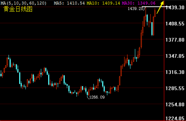 金价周三企稳,回吐稍早涨幅,因股市上扬降低了无息黄金的吸引力,而全球经济成长忧虑和鸽派货币政策前景支撑金价。在美国市场开盘后, 黄金价格 曾短暂逆转走势,但后来回稳。 原油期货价格周三收盘上涨1.15美元,涨幅2.04%,报57.40美元/桶。油价周三在美国假期前走高,因美股上涨抵消部分投资者对经济前景的忧虑,且美国石油钻井数录得下降。而此前一天油价曾大幅下跌,因对全球经济放缓的担忧盖过了石油输出国组织(OPEC)及其盟友延长减产协议决定的影响。 国际黄金 , 伦敦金 分析: 周三黄金开盘在1421.42美元,早盘延续走强的强势上涨,一路飙升至最高的1437.53美元,随后开始向下回落,美盘