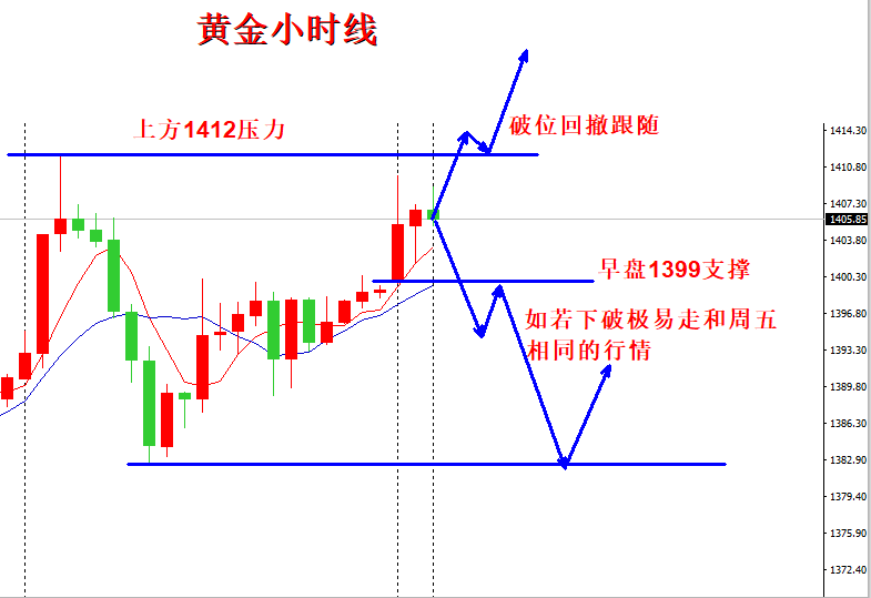 我是鑫盛点金,一个你值得信赖的良师益友! 若非生活所迫,谁愿意把自己弄的一身才华,自身掌握的技能,往往无法满足自己的欲望。努力到无能为力,拼搏到感动自己。俗话说:知我者谓我心忧,不知我者谓我何求?人生为什么要努力,因为你想要的东西太贵。我是胡鑫盛,在你任何时候需要帮助的时候都愿意帮你的那个人 作为投资人,一定要让自己变得专业,只有对 金融市场 专业了,才能清楚的认识市场。 黄金在上周晚间美盘下探1389美金企稳震荡反弹,收盘报1399美金,今日早盘直接突破1401美金压制拉升,最高反弹触及1409美金,现价1404美金。 黄金H4走势图分析,四小时图布林带目前整体向上开口发散,布林中轨向上运