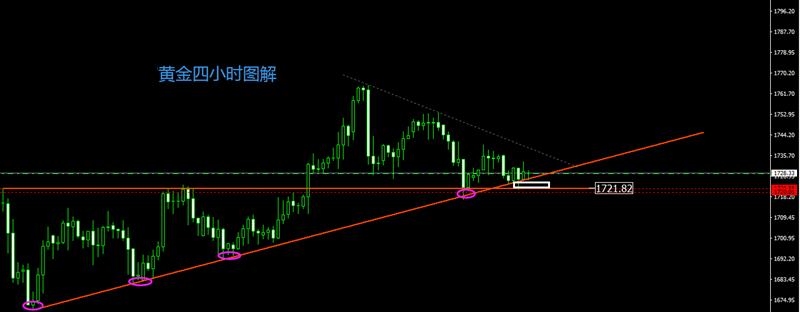 凌佳言:5.22黄金暴跌创本周新低是什么原因?黄金反弹震荡还会再跌吗? 今日周五,黄金总是迎来了平静,多空深陷1726-1740区间震荡徘徊,上下波动不到15个点的区间。较比昨日的行情,那可以用惨淡两字来形容了。当然了,对于今日而言,获利也还是有的,到现在为止预计也有20个点左右的利润空间,那么加上这周前面几天,突破100个点,完全是有可能的。但是这主要还是看各位学员跟上了多少。 黄金走势分析 消息面分析;周四因国际贸易局势引发了市场的疑虑,部分黄金投资者选择获利了结。同时随着封锁措施解除,美国的制造业和服务业均出现温和复苏的迹象,因此引发了黄金的部分抛售,较日内高点回落20美元,刷新一周低