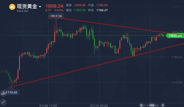 凌佳言:7.14黄金多头无力,是否重回空头时代,日内黄金还能做多吗? 很多投资者赚不到钱,主要程度是心态上问题。心态上不能过关,所以很难赚到钱。在震荡的时候,盘子跑来跑去的红绿K是最蛊惑人心的。没有强大的心理支持和过硬的技术分析,是很难进行一定程度的获利。 黄金走势分析 黄金昨日给的是1800上下做多,1812上下沽涳,一个来回,多空20美金的利润全部到手。周一也是开了一个好头,震荡的行情,震荡的盈利。虽然一个来回20美金,不算多,但是整体上已经可以了,毕竟稳健第一,利润第二。 关注工纵好“凌佳言点金”即可享有定制交易系统、黄金实盘群名额,专属风控方案一份!+魏tjy1238 黄金昨天走了过