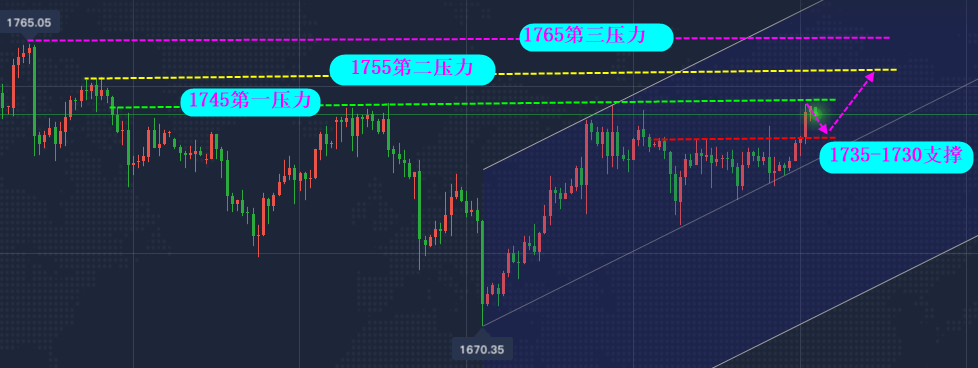 凌佳言:6.22黄金冲高势能放缓,晚间谨防探底回升 一个没有规划的投资无异于在大海上漂浮的一只小船,随时都有翻船的可能,投资并不会因为你是弱者而享受优先待遇,每次行情起起落落犹如大浪淘沙,能剩下的才有机会继续赚钱,打有准备的仗我们才能存活下去。不要因一时盈利而忘乎所以,也不因一时失利而痛不欲生,投资看的是整体利益,不卑不亢,不急不躁,总会在市场上搏得属于自己的利润。 黄金走势分析 黄金方面本周开盘得益于全球对第二波疫情的担忧,避险情绪一度高涨,导致黄金急速反弹,那么针对日内的操作来讲,由于早间盘面直接冲高,并连续破高,目前最高给到1759附近,这种行情追高的并没有太大胜算,继续延续走高的机会