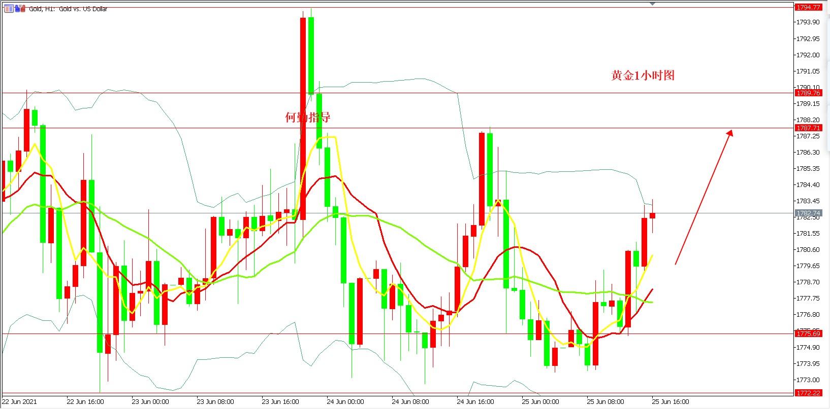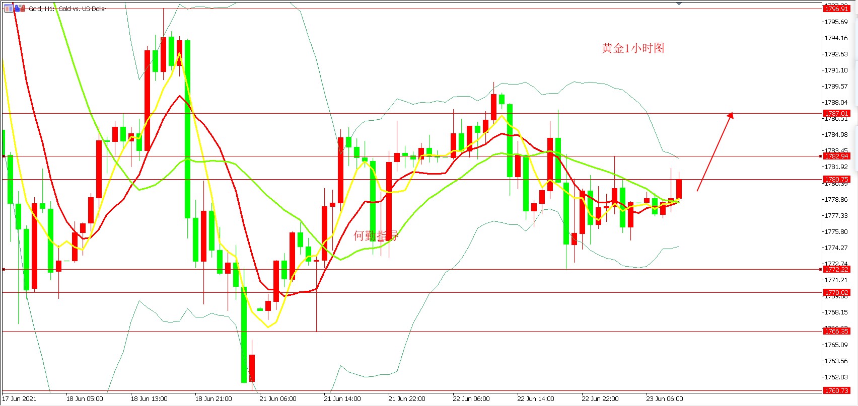 投资这一块,选择对了一个老师,对你的意义可不止止是账户增值这么简单。 我可以给你一单盈利的策略,也能给你单单盈利的方法,更能教你全线掌控行情长期稳健盈利的秘诀!为人师者当如此! 不论如何,何勤都想告诉各位投资朋友,在这个市场,无论何时,无论你的交易盈亏如何都要学习,学基本的技术指标,学如何控制仓位风险,赚钱不易,且行且珍惜! 基本面分析: 四小时图上,布尔带开口扩张向上走势稍偏多,当前金价随上轨向上延伸保持上试反弹势头。MACD量能量值共性偏多支持当前金价反弹表现,但跟进量筹信心稍有不足或限制其反弹步伐及空间。KD值呈金叉表现或有利金价继续震荡上试作为,但因指针运行速率过快加之跟进斜率稍显不